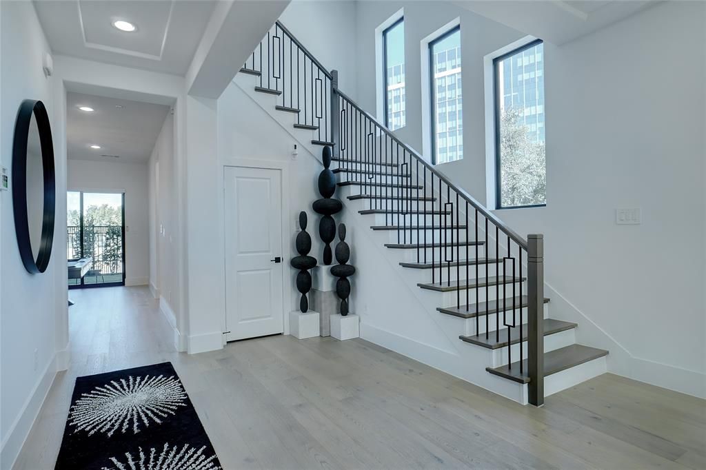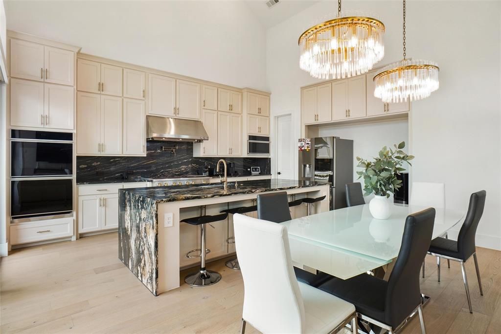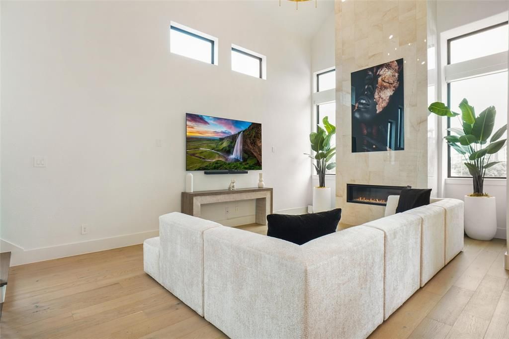 Executive Lease offering short term options! Welcome to sleek, modern retreat in the vibrant heart of Plano. Striking entryway leads to game room, offering covered patio access & well appointed wet bar. 2nd level, experience main living area, suffused with natural light, featuring towering ceiling, fireplace, & magnificent views. Kitchen, stylish & practical, boasts generous cabinet & pantry storage, lavish counters, sizable waterfall-edged island, & superb appliances. Adjacent covered balcony includes built-in grill. Split layout gives additional privacy to spacious owner's suite which offers private balcony & sumptuous en suite with dual vanities, 2 walk-in closets, frameless glass shower, & indulgent soaking tub. 3rd level, you'll find a guest bedroom with full bath, a powder room, & fabulous space to relax or entertain with indoor loft, two covered deck areas, & one open deck. All levels accessible via private elevator. Close to desirable shops & restaurants at Legacy West.