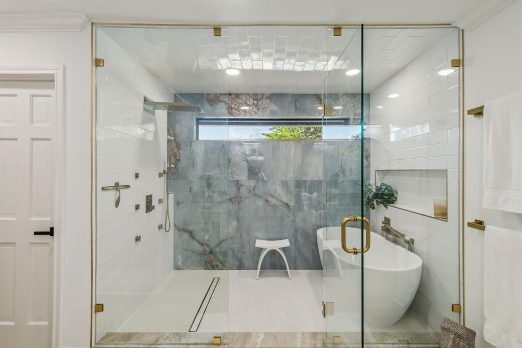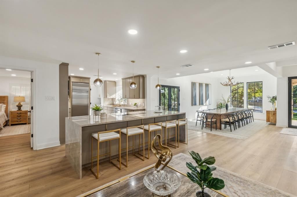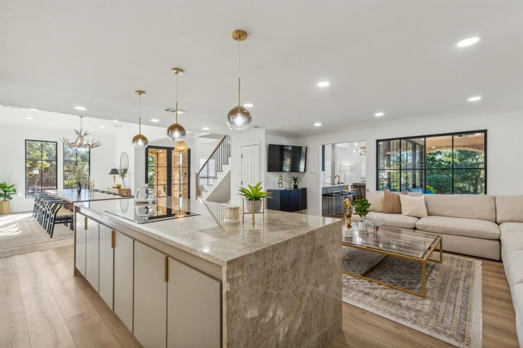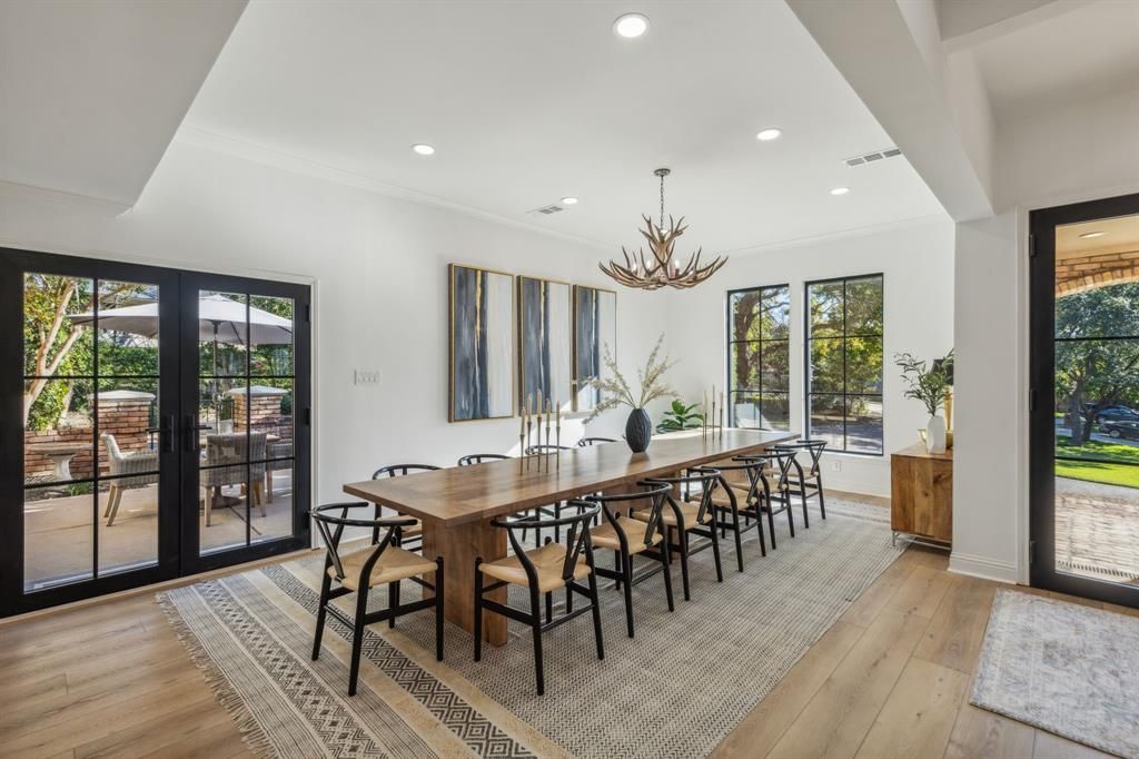 Luxury rental in Rockwall! Set on spacious 1.38 acres near charming downtown dining, shopping, and lakeside sunsets, just 30 minutes from Dallas. Chicago antique brick exterior is embraced by mature trees and lush landscaping. Step through black-framed glass doors into a fusion of timeless-meets-modern design. Light wood-tone, luxury vinyl flooring leads to a striking kitchen featuring a Taj Mahal waterfall island and refined cabinetry. Enjoy coffee on the private courtyard patio, gather with family and friends in oversized dining area. Relax or entertain in spacious living areas connected by a stylish bar. Expansive slider doors open to a stunning diving pool and patio scene, complete with a cabana, bar, and bath. The secluded primary suite boasts a cozy seating area, fireplace, and a luxe wet-room shower. An additional downstairs bedroom with study built-ins, plus three more character-filled bedrooms and living upstairs. Top-rated RISD schools.