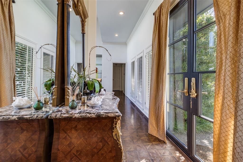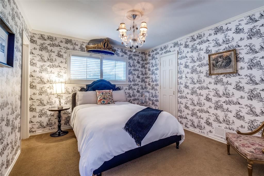 Beautfiully furnished home in Mockingbird Park. Garden gated entry to the architectual front door of home.A sophisticated designer soft contemporary french home with an enchanting entry through a brick -walled courtyard. Features furnished three bedrooms and three bathrooms, providing ample space for comfortable living. Luxury modern and sophisticated french antique furniture. Main bedroom, overlooking the pool outside, is spacious with a designer California Closet and primary bath soaking tub. The living room's vaulted ceiling with a tall Restoration Hardware french mirror over the estate french marble fireplace is beautifully appointed with furniture that will make you want to stay in lounging and entertaining. Elegant Dining room with round dining table and mirrored walls. Main living area overlooks a backyard pool, bar and grill and grassy area, creating an inviting atmosphere for relaxation and entertainment. Island kitchen opens to a spacious breakfast room. Upstairs den features a balcony overlooking the pool. Near Inwood Lovers Shopping Trendy Restaurants Tollroad and Airports.