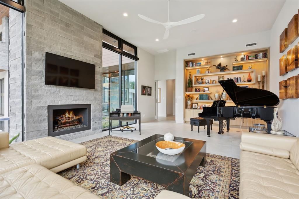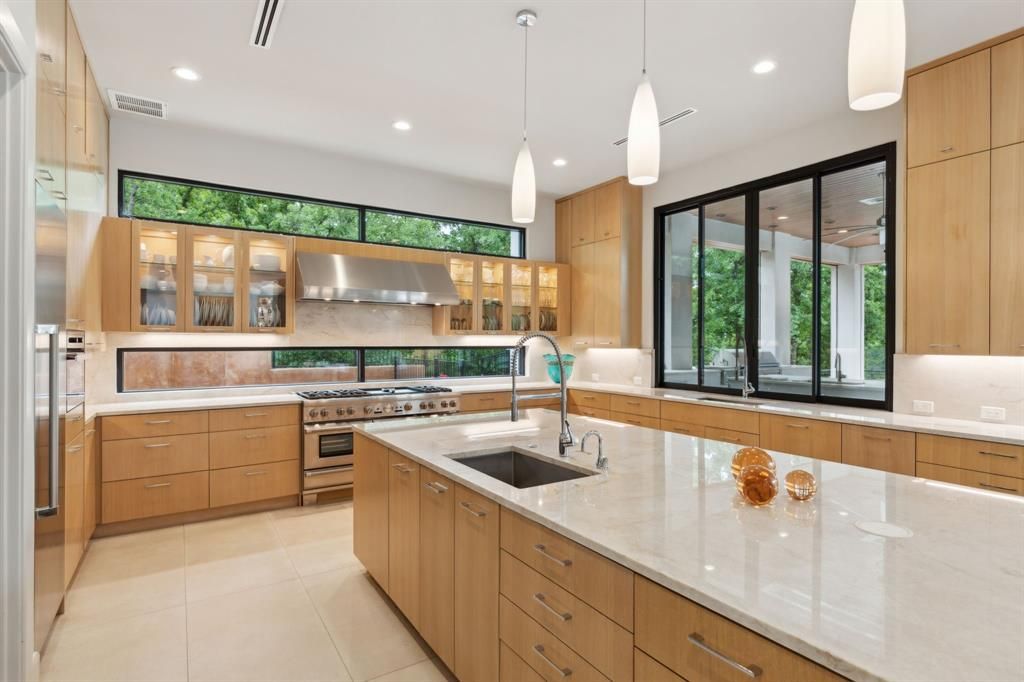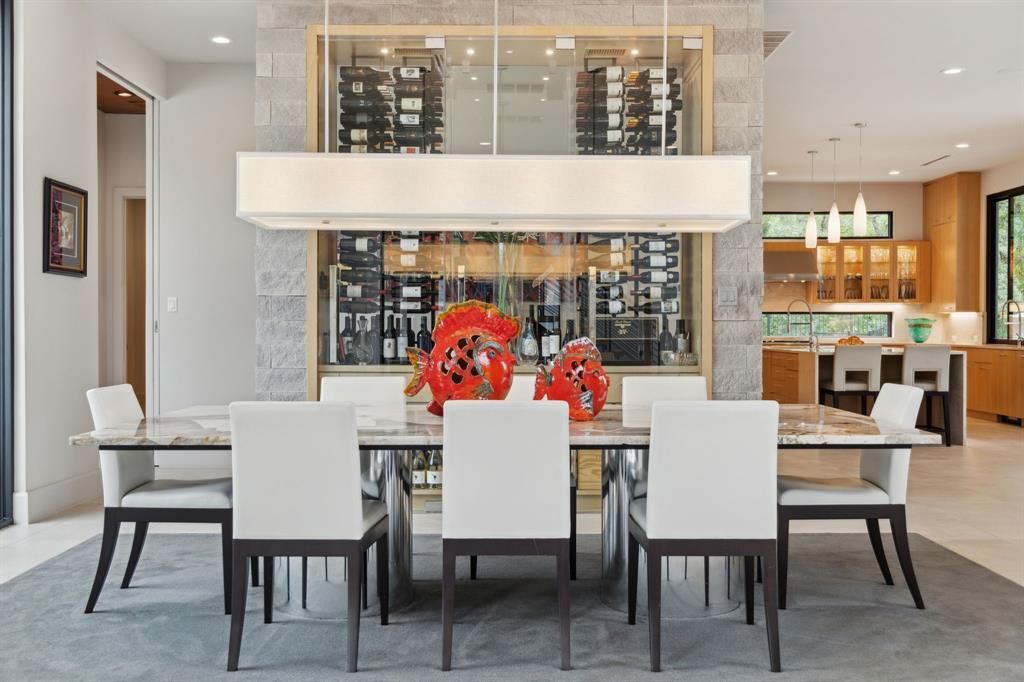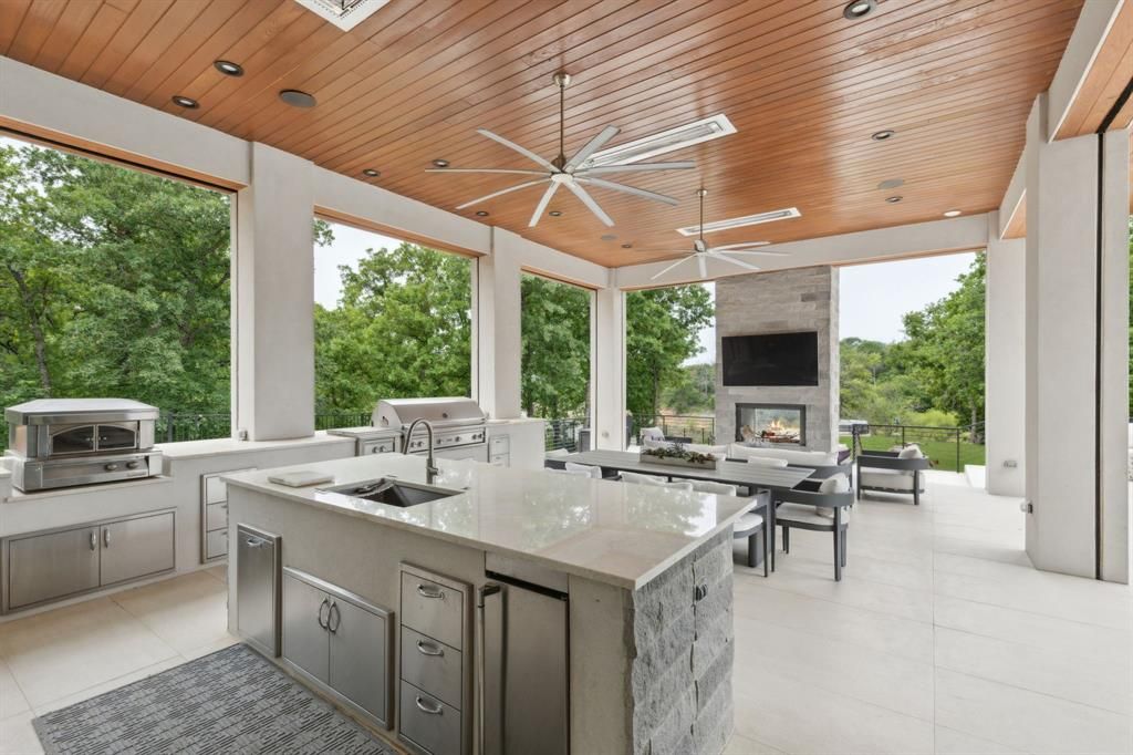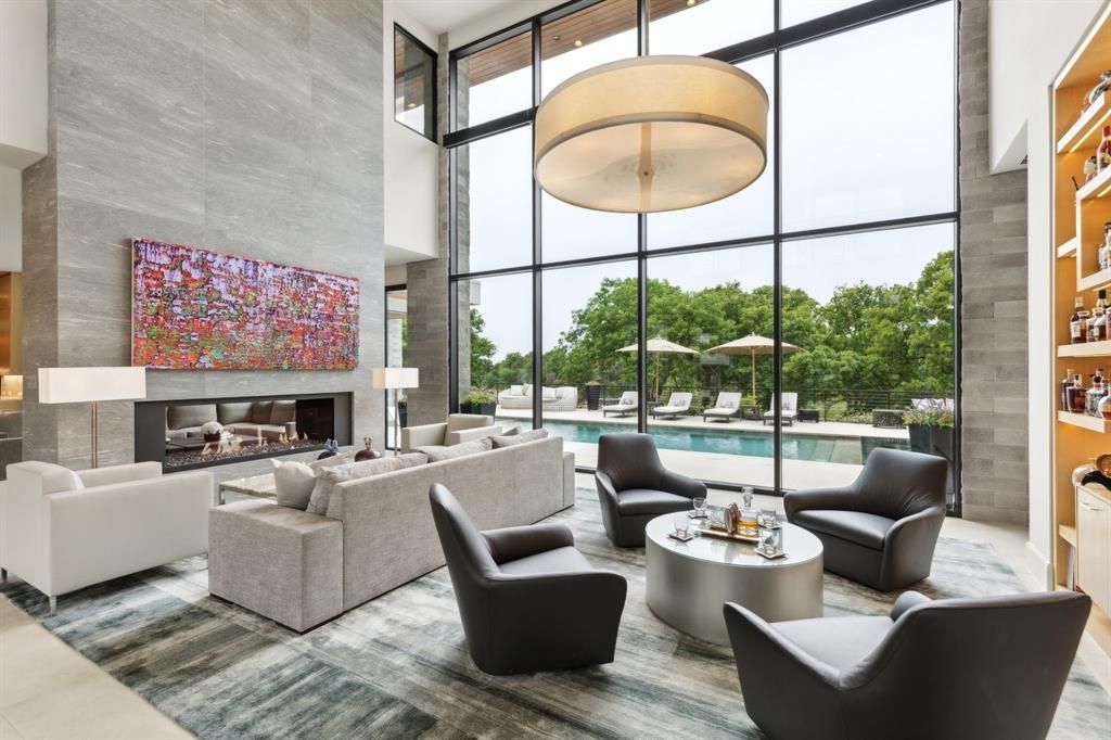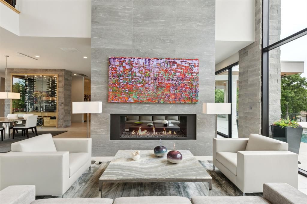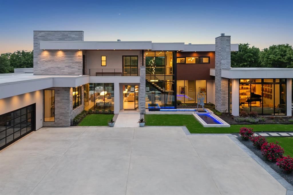 Where Modern Art Meets Lakeside Luxury! A bold statement in contemporary architecture, this iconic Lake Grapevine estate redefines upscale living. Poised on over two pristine acres of private shoreline, every inch of this residence has been masterfully curated to impress"”from the striking floor-to-ceiling glass walls that blur the line between indoors and out, to the sleek floating staircase and expansive open-concept interiors that bask in natural light and sweeping lake views. A sculptural entryway welcomes you into a dramatic living space anchored by an 8-foot see-through linear fireplace and a mesmerizing water feature that flows effortlessly from the exterior into the heart of the home. Entertain with ease in the state-of-the-art glass wine gallery and dual chef-caliber kitchens outfitted with top-tier appliances, custom cabinetry, and refined finishes. The primary suite is a serene sanctuary, complete with a spa-inspired bath, heated floors, and a dressing room that rivals high-end boutiques. Four additional guest retreats offer ultimate privacy and comfort with amenities such as private on-suite baths , private patios, and a convenient upstairs laundry and game room! Your guests will stay in style with an abundance of amenities around every corner. The downstairs Family Media room is conveniently flanked off of the entry-way foyer which can also serve as a Executive study or Library. Step outside to a true outdoor paradise. Lounge beside the infinity-edge pool with tanning ledge and heated spa, or host lavish soirées under the expansive covered patio with full outdoor kitchen, fireplace, and multiple seating zones. A 5-car garage provides ample space for your luxury collection, while the manicured grounds, gated entry, and private fire pit at the water's edge elevate this estate to an unmatched level of sophistication. An extraordinary lifestyle awaits"”where every detail is designed to captivate and every moment is framed by the tranquility of the lake.