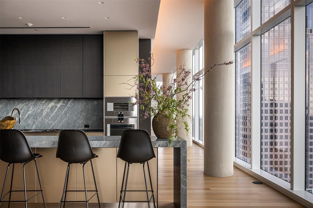 The Gallery Penthouse at HALL Art Residences in the Dallas Arts District is a full-floor custom home on the 26th floor. Direct elevator access into this 4 bedroom, 4 bath, 2 powder bath home with 7,688 sq ft offers floor-to-ceiling windows, 12-foot pocket doors and hand-troweled plaster columns throughout. The Living Room showcases 14-ft ceilings, a monumental fireplace and wine cellar. The gourmet kitchen is designed with bulthaup cabinetry, Gaggeneau appliances and an oversized customizable butler pantry. Enjoy unobstructed panoramic views of the Dallas skyline in the dining room and private terrace. The primary bedroom suite is a serene retreat complete with its own private terrace. The spa-inspired en-suite bath offers two spacious walkin closets, soaking tub, large shower, heated floors, and a smart mirror. Other distinctive features are a private library with a fireplace, 2 utility rooms and raised flooring system. This home was designed by Abeyta Tibbs Architecture.