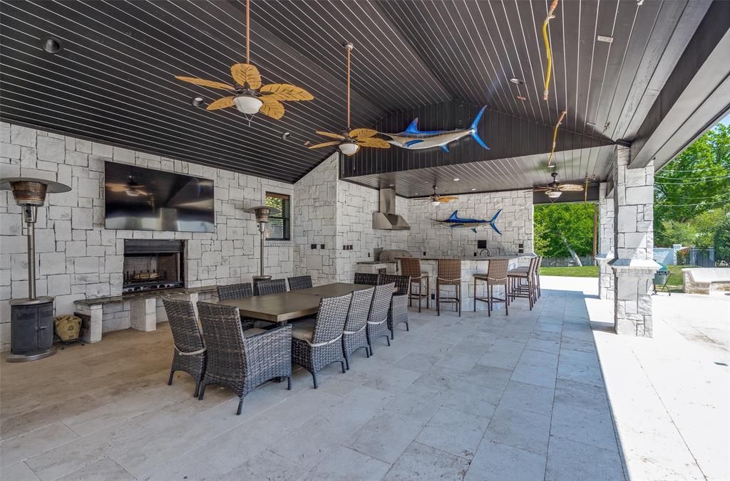 This masterfully crafted estate in Bluffview blends timeless architecture with modern comfort, offering an acre of beautifully landscaped grounds & sophisticated indoor-outdoor living. Soaring 25-ft ceilings, marble-floored entry, sweeping staircase & light-filled living spaces, every detail is designed to impress. The heart of the home is a chef's dream kitchen featuring a marble island with seating for 10, Wolf appliances, dual dishwashers, a butler's pantry, & custom walk-in wine room. Adjacent living & dining areas open to main patio, perfect for everything from quiet evenings to large-scale entertaining. The private primary wing is a true retreat with 2 fireplaces, sitting area, morning bar, & direct access to private patio with newly built gas fire pit. A spiral staircase leads to a 2nd level of 4 oversized walk-in closets. Also included is a private laundry & nearby flex room. Every oversized bedroom offers a private en-suite bath & walk-in closet. Upstairs, enjoy a spacious family & game room with a full kitchen, a theater room, craft space, & elevator access. 1,200 square foot second-floor office features a built-in library, private patio, room for dual and a central lounge area with fireplace. Outdoor living rivals any resort, with a stunning pool & spa surrounded by over $1M in professional landscaping, large crescent shaped gas fire pit, & a full outdoor kitchen. A 969-sqft guest house with bath expands your entertaining options. Eight fireplaces create warmth and ambiance both indoors and out. This residence is a true lifestyle property"”thoughtfully designed for luxury, comfort, & extraordinary entertaining.