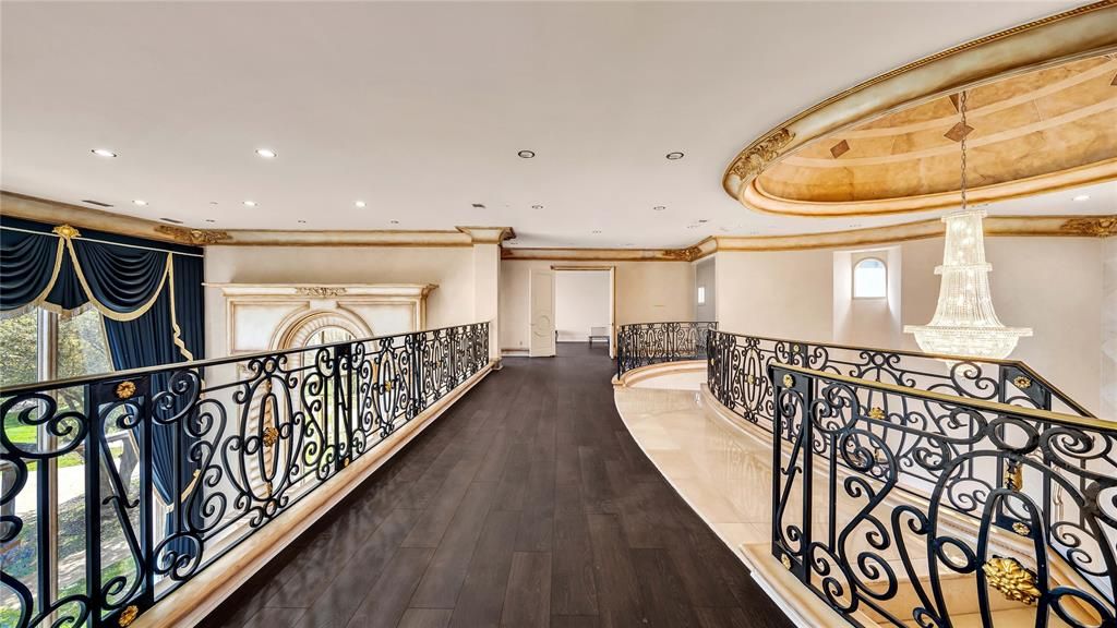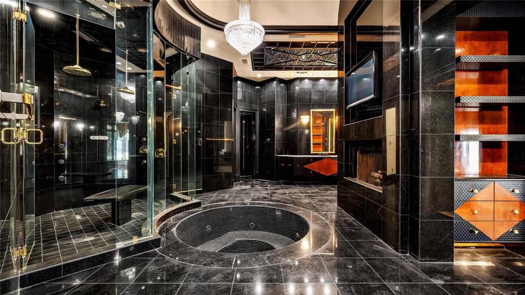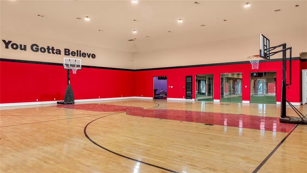 Once the legendary home of Deion Sanders, this iconic estate awaits a stunning restoration. The architectural masterpiece offers nearly 6 acres of luxury living in true Texas fashion. Spanning almost 30,000 square-feet, the estate makes an unforgettable first impression with a dramatic grand foyer, highlighted by a floating double staircase, towering ceilings, marble floors that carry throughout the home, and floor-to-ceiling windows that bathe the interiors in natural light. Crafted for extraordinary living, the manor features an expansive entertainment wing complete with a home theater, indoor pool, two-lane bowling alley, indoor basketball court, sauna, steam shower, barbershop, recreation room with bar, and a fitness center. Designed for refined taste and indulgent luxury, the massive primary suite boasts a fireplace, kitchenette, built-in laundry station, in-ground jetted spa, direct access to a two-car garage, and a showstopping 3,000-square-foot custom two-story closet with a glass walkway and an integrated tailoring space. Outside, the estate continues to impress with a view of the eight-acre fully stocked pond, private dock, outdoor pool, outdoor kitchen, and ample space for entertaining. The 14-bay garage includes two oversized bays to accommodate a yacht or RV, ensuring space for all your luxury vehicles and toys. Boasting a classic stucco architectural style, this one-of-a-kind property features 9 bedrooms,10 full bathrooms, and 2 half baths, offering an extraordinary blend of comfort and functionality. This estate is being sold as-is and presents a rare opportunity for the next visionary owner to restore it to its original fame and grandeur. A true Lone Star treasure, this home is a bold testament to the saying, "Everything is Bigger and Better in Texas."