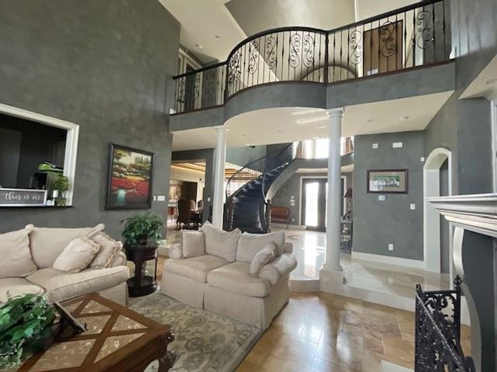 Stunning one-of-a-kind sprawling estate with views! Fully custom incredible home on over 2 acres. Completely renovated in 2017 2018. Home was built with 2 x 6 construction and Anderson windows and doors. Too many features to list. This 6 bedroom, 9 bathroom mansion boasts soaring ceilings, almost 100 windows, an office, gym, game room, movie room, mother-in-law suite, 2 staircases, 3 fireplaces, entertainers bar, chef kitchen, and even a hidden room. Every bedroom has a private full-sized bathroom with a walk-in closet. Storage everywhere! Automated lighting in every closet throughout the home. Home assessed as 7222 sq ft. Added movie room and full bathroom during 2018 renovation. Exterior features are commercial grade private 8 ft fence with double custom designed front gate leading to beautiful circular driveway. TWO swimming pools including a diving pool, hot tub, large custom predator proof chicken coop, raised bed vegetable garden, fruit trees, fire pit, full-size basketball and tennis court with professional lighting can easily be changed into a PICKLEBALL court, 800 ft well to aquafer FRESH potable water!! Tornado and storm shelter, lightning suppression system, and plenty of acreage left to plant an orchard, build a boat garage or park any toys or trailers because there is NO HOA!