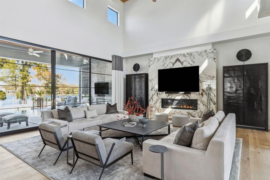 Discover a rare gem just 70 miles southeast of Dallas, where sophistication meets serenity in this 2023-built lakehouse on the tranquil shores of Cedar Creek Lake. This stunning residence offers panoramic water views and unforgettable sunsets, providing an unparalleled lifestyle of luxury. Thoughtfully designed, the home seamlessly blends modern design with nature's beauty. Floor-to-ceiling windows flood the expansive living spaces with natural light, showcasing breathtaking views. Curated by top designers, the home features high-end finishes and contemporary furnishings, exuding both elegance and comfort. The gourmet kitchen is a chef's dream, with state-of-the-art appliances, custom cabinetry, and a striking waterfall quartz island. The primary suite is a private sanctuary, with serene lake vistas and a spa-like ensuite bathroom that promises relaxation. Generously sized bedrooms ensure privacy and comfort for family and guests. Outdoors, a private oasis awaits with five unique seating areas surrounding a temperature-controlled pool and spa, perfect for alfresco dining and entertaining. Whether relaxing by the water or hosting guests, this lakehouse offers luxury and an exceptional lifestyle.