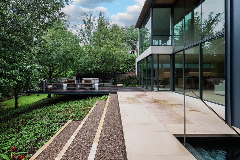 Introducing a stunning contemporary home in Park Cities. This architectural gem, designed by Oglesby Greene, offers an exceptional living experience. With 4 bedrooms and high-quality finishes, this home boasts floor-to-ceiling windows that bathe the interior in natural light. Enjoy the tranquil backyard in the cantilever deck overlooking the creek, a two-story living room with a fireplace, and a master bedroom featuring its own cozy fireplace. Don't miss the unique touch of the koi pond. This property is a true masterpiece of modern design.