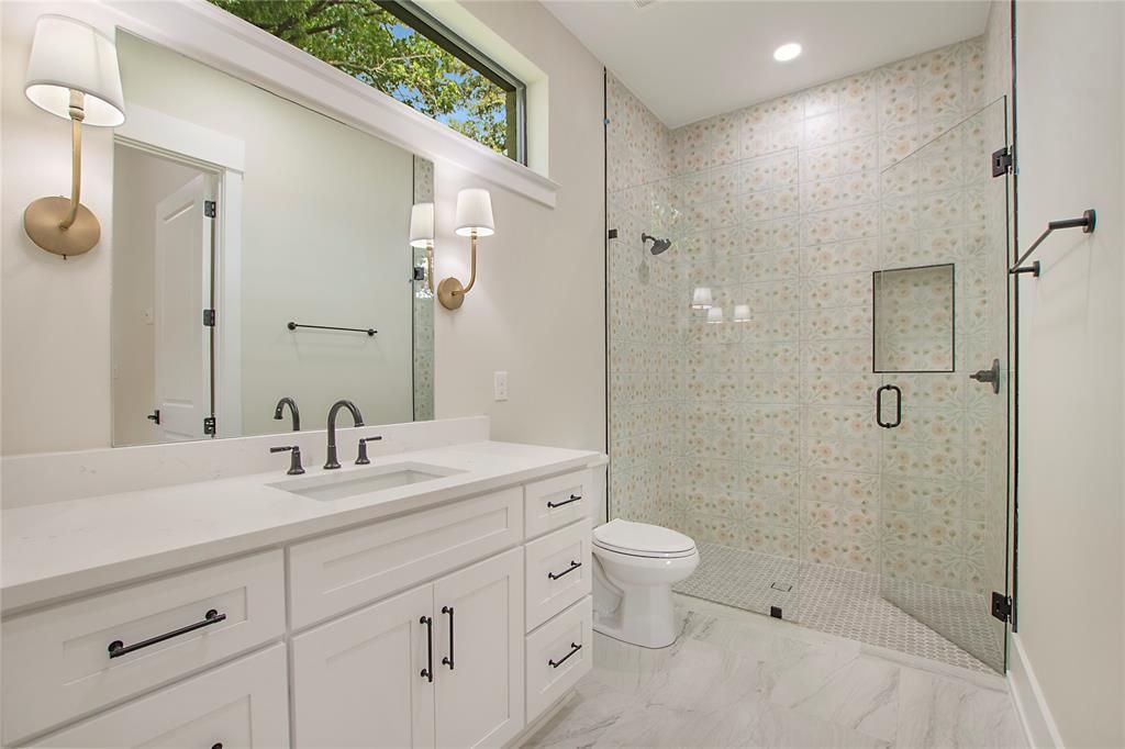 Masterfully crafted by EMRO Homes and located in the highly desirable Private School Corridor of Dallas. You are greeted by a sense of openness and elegance, with high ceilings and carefully chosen finishes. A unique feature is the hidden storage room in the home office. Gourmet kitchen with top-of-the-line appliances, custom cabinetry, and a large island ideal for meal prep and entertaining. A secondary kitchen provides extra space for larger gatherings or additional meal preparation. A garage entry pantry door, which provides direct access from the garage to the pantry for easy grocery unloading. LED-lit wine display, multiple living areas, expansive windows flood the home with natural light, enhancing the warm, inviting ambiance that flows throughout. The thoughtful floor plan allows for smooth transitions between rooms, creating a seamless living experience.The primary suite is complete with a spa-like bathroom featuring his and hers toilets, a soaking tub, and a walk-in shower. Other bedrooms are equally well-appointed, each with its own en-suite bathroom for added privacy and convenience. The home is also elevator-ready, allowing for future installation. Outdoor living is a highlight, with a covered patio equipped with patio heaters for year-round comfort, bug screens that add an extra layer of convenience, making the outdoor space perfect for entertaining or relaxing without interruptions from pests.