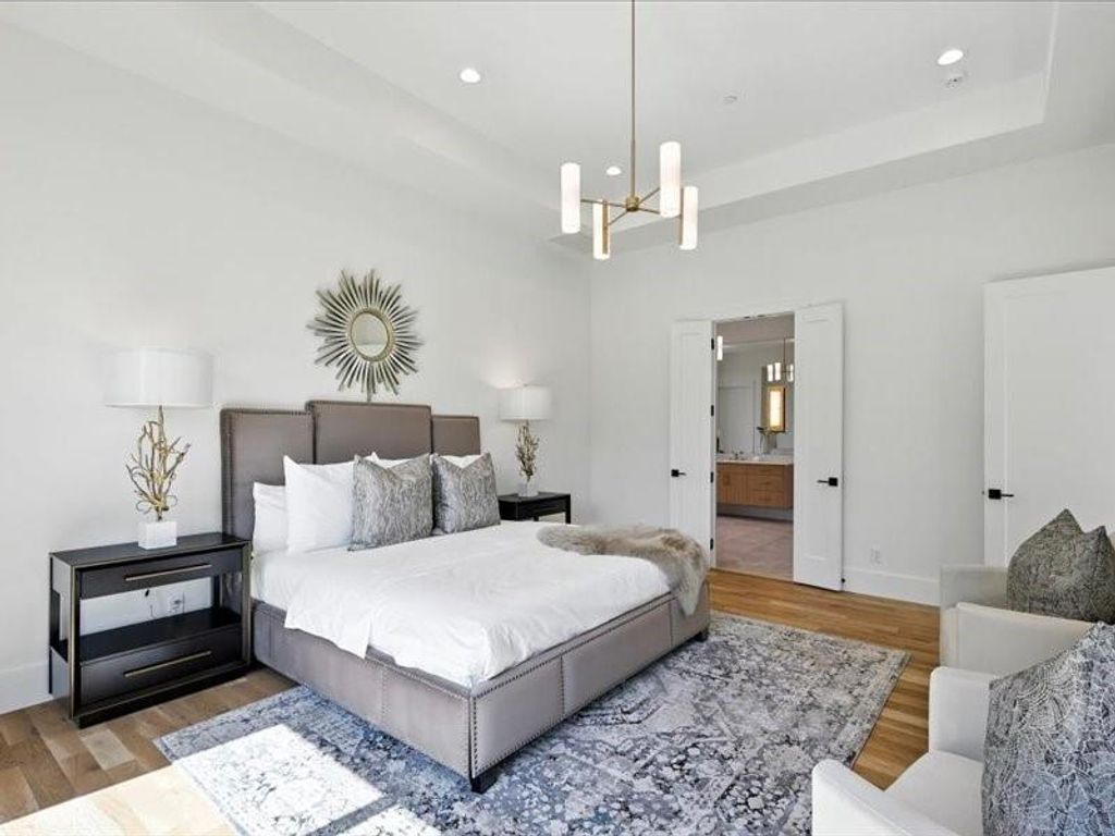 Welcome Home to this brand new, gorgeous Calais Custom Home. Nestled in the quiet, back part of the prestigeous Old Grove neighborhood, this modern home offers an unparalleled living experience, exceptional floor plan, light and bright finishes and a spacious backyard for you to create your backyard dream oasis. As you enter the impressive steel and glass pivot front door, you are greeted with 21 foot soaring ceilings, walls of windows, gorgeous wood floors and open plan living. Blending luxurious finishes with modern design, this home features highest end Wolf and Subzero appliances, stone countertops, designed hardware and plumbing fixtures, and white oak floors. The open-concept offers a large Family - Breakfast - Chef's Kitchen with huge island with quartizite counters, for family and friends to enjoy. Step into the Game Room with wet bar with sliding doors to the oversized backyard, covered patio and serene views.The dream Primary Retreat features lovely backyard view, a lavish spa bath and expansive closet. 2nd Primary suite is also downstairs. Upstairs offers 3 large Bedrooms with en-suites and walk-in closets, plus a Exercise Room, Loft and Bonus space. As you head into the backyard, you find a large veranda, complete with a with cozy fireplace for year-round enjoyment, and surrounded by exquisite landscaping and mature trees that enhances the home's secluded ambiance. Home also boasts an Executive Study, Prep Kitchen, large Laundry room, tons of storage, a spacious 4 car garage. This is a truly extraordinary residence, and a rare combination of privacy, elegance, and functionality.