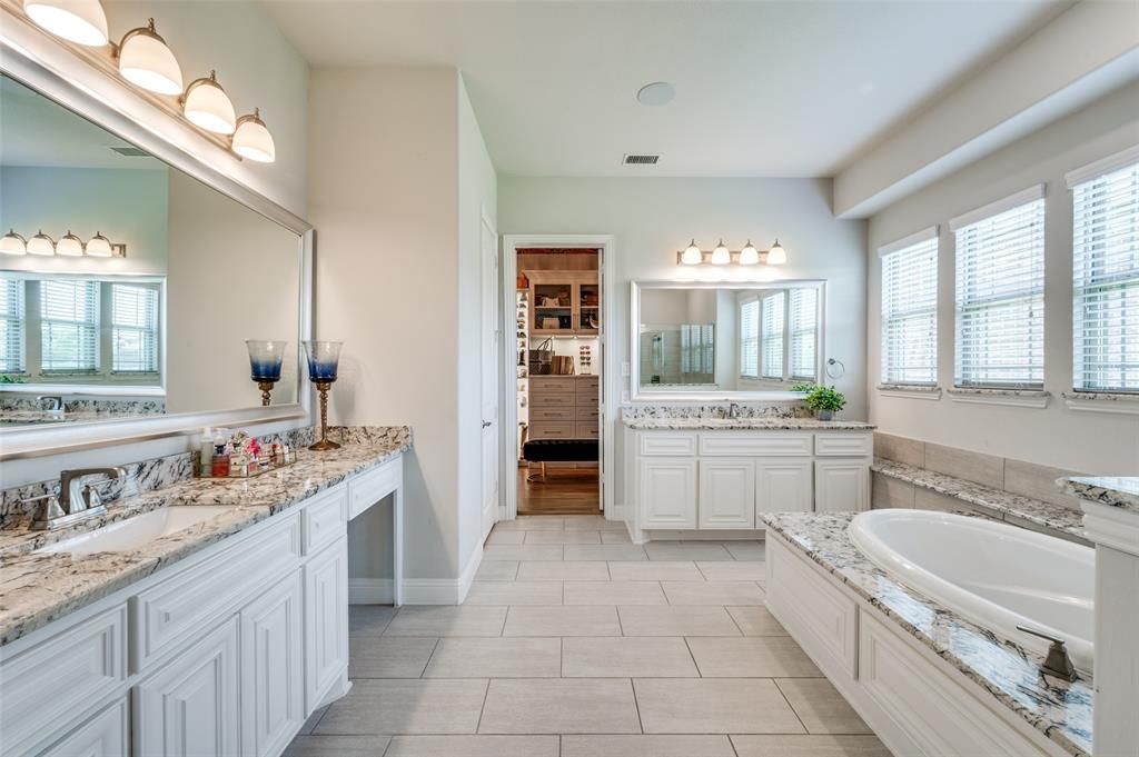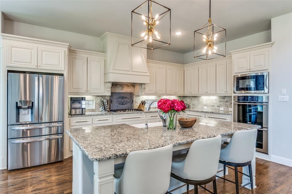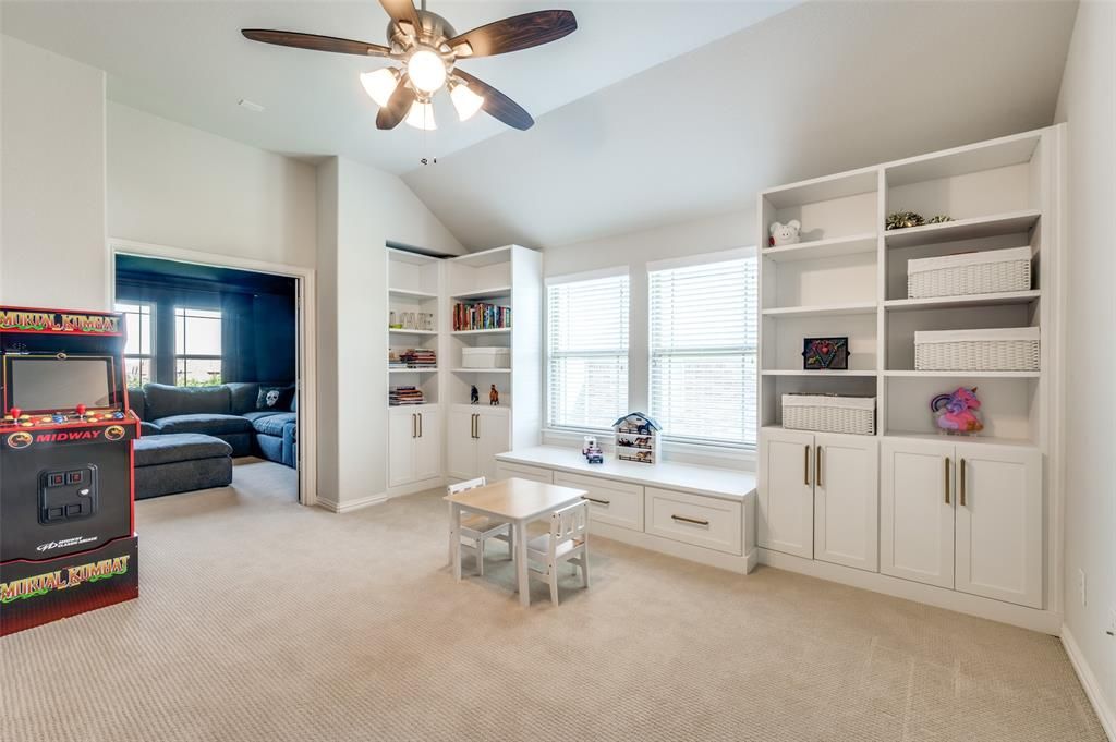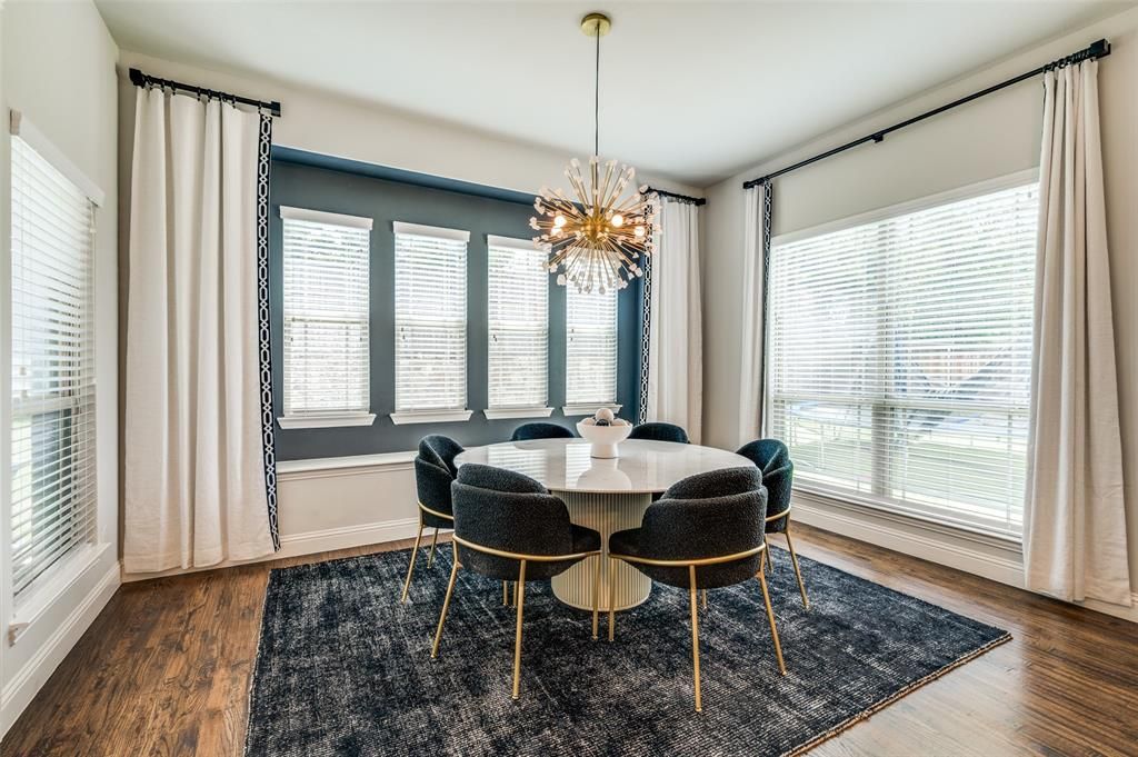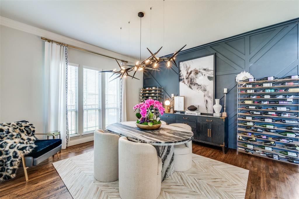 Discover a STUNNING blend of modern luxury and timeless elegance in this exquisite 4-bedroom residence located in the prestigious estate section of the sought-after Lakes of La Cima neighborhood. This home, never before leased, boasts beautiful interior design finishes, handscraped hardwood flooring throughout the 1st floor, a sweeping modern iron staircase, and offers an expansive & inviting open layout. The soaring ceilings of the living room create an impressive sense of space, seamlessly flowing into the spacious kitchen, with large island, and the circular-style adjacent breakfast room. The home has an abundance of natural light with floor-to-ceiling main area windows. Gorgeous chandeliers and custom wallpapered ceilings add opulence and charm to the interiors. Entertain elegantly in the front formal dining room. Relax by the stunning modern style fireplace or work from home in the versatile study, which ingeniously features a Murphy bed for adaptable functionality. The primary suite, conveniently located on the main floor, exudes luxury with a gorgeous RH chandelier, wall light sconces, and a large bathroom with two separate vanity areas, tub & large shower. Don't miss the custom-designed closet with ambient lighting! With three additional well-sized bedrooms upstairs, a game room, handsome media room and a loft area overlooking the main living areas, this residence offers ample space for all your needs. The exterior of the home is equally impressive, situated on a vast grassy lot that promises endless opportunities for outdoor activities. A welcoming covered front porch invites leisurely moments, while the unique garage setup provides both a separate 2-car and a 1-car garage, balancing convenience and storage. This home is located within the highly-desired Walnut Grove High School zone. The beautiful La Cima neighborhood offers swimming pools, walking paths and a lovely lake area. Conveniently close to Highway 380 and minutes from the North Dallas Tollway
