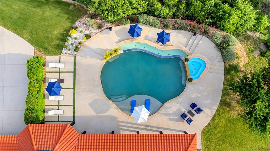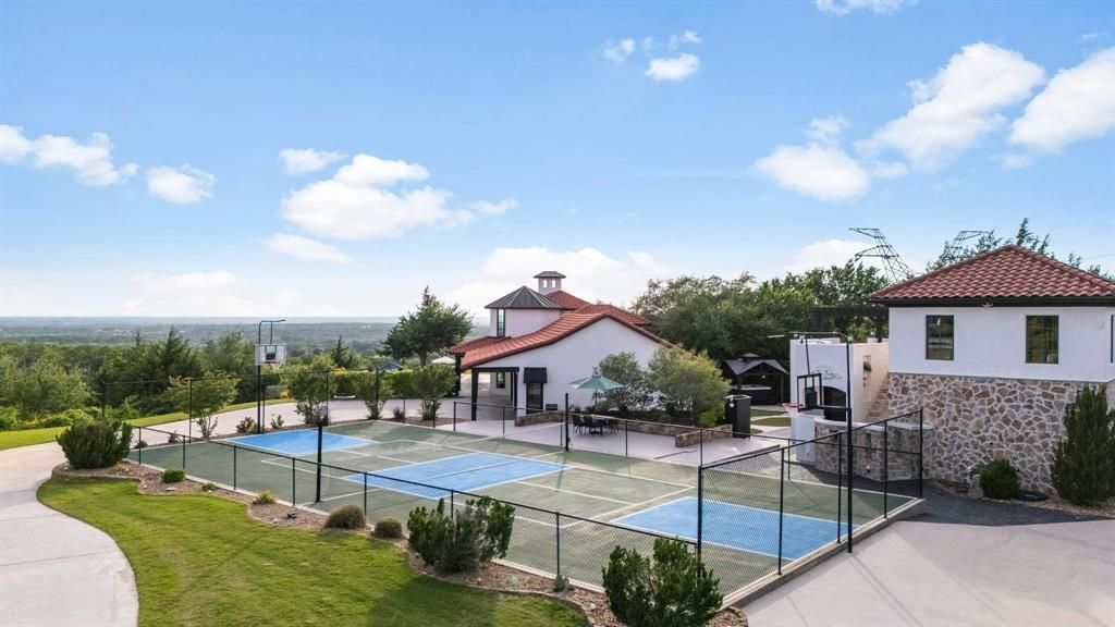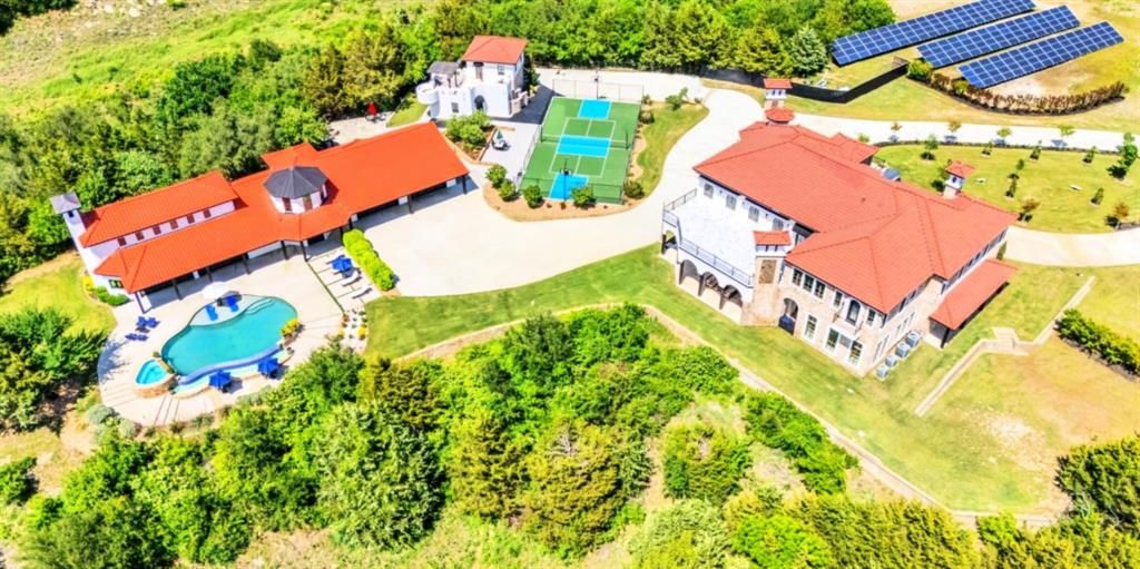 Welcome to La Casa de Fe, nestled in Decatur, TX, just a 30-minute drive from Ft Worth. This private estate spans 25 acres and offers some of the most breathtaking views. At its heart lies a luxurious Spanish-style mansion featuring a 1,200 sq. ft. primary suite, four en-suites, library, media room, private office, and expansive living areas surrounded by resort-style living spaces that cater to comfort, elegance, and entertainment. The prestigious outdoor entertainment areas add to the charm. The air-conditioned six car garage fulfills your automotive needs. The separate pool home serves as a fully equipped secondary residence and game room. It opens seamlessly to a show-stopping resort-style pool with a 38-foot infinity edge cascading into a lower reflective pool. For guests seeking privacy, the Parisian-inspired villa delivers elegance and romance, with sweeping views and upscale accommodations that rival top-tier resorts. Stay active in your private fitness center, outfitted with a full gym, kitchen, and bathroom, or enjoy the multi-sport court featuring pickleball, tennis, basketball, and more. Unwind on the putting green or in the private spa, perfect for recharging in peaceful seclusion. The estate includes a driving range to perfect your swing, and a hangar barn for storing your toys. The barn features living quarters, and more. The helipad providing access to the city or enjoy your aviation passion. Whether you're into motocross, shooting, ranching, or sports, there is space and infrastructure to support it all. It doesn't end there, bordering the Caddo-LBJ National Grasslands, offering opportunities for horseback riding, fishing, hunting, and camping. The private estate, second home, corporate retreat, wedding venue, equestrian paradise, or a professional athlete's dream compound, this estate delivers it all. Additional info: There are two bedrooms, a loft, and two bathrooms in pool house. The is one bedroom, kitchen and full bathroom in the Villa.