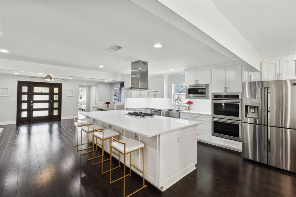 Exceptional lease opportunity in the prestigious Bird Streets neighborhood. Discover this beautifully renovated 5-bedroom, 3-bath home, perfectly situated on a spacious corner lot in one of the most coveted areas of Dallas. Taken to the studs and rebuilt with premium upgrades, this home features a new roof, plumbing, electrical, foundation, hot water heater, driveway, privacy fence with electric gate, and a spacious new deck"”offering both style and peace of mind. Step inside to open-concept living spaces, highlighted by a stunning stacked-stone fireplace and a chef-inspired kitchen with a 10-foot quartz island, farmhouse sink, double ovens, gas cooktop, accent lighting, and a dedicated dining area"”perfect for entertaining. Additional features include beautiful hardwood floors throughout, a thoughtfully designed mudroom with custom shelving and a built-in bench, and a luxurious primary bath with a free-standing soaking tub. Enjoy the added convenience of extra parking for larger vehicles, thanks to the corner lot location. Washer and dryer, refrigerator, pest control, and security cameras are all included. Located near Love Field Airport, the Dallas North Tollway, Inwood Village, Highland Park Village, and the vibrant shops and restaurants on Lovers Lane, this home combines luxury living with unmatched convenience.