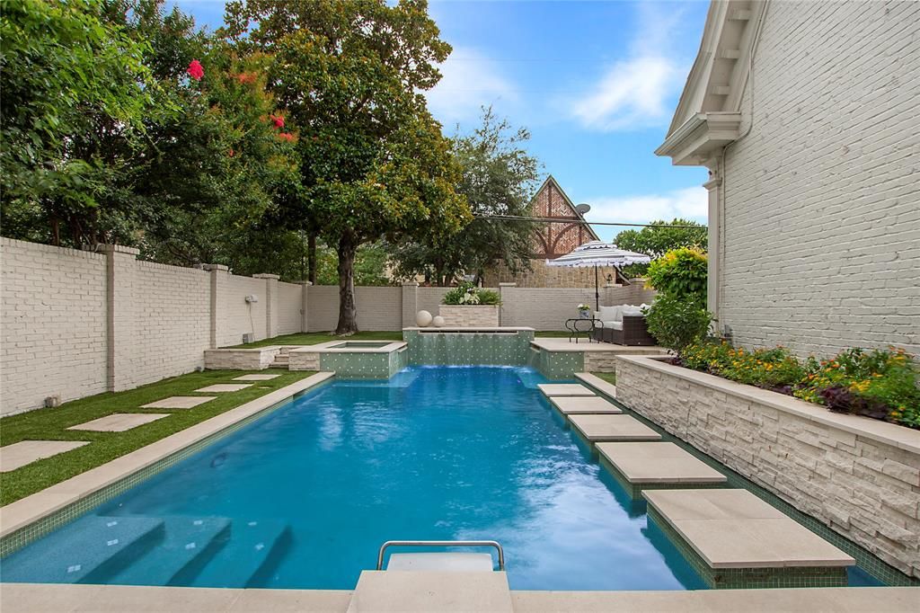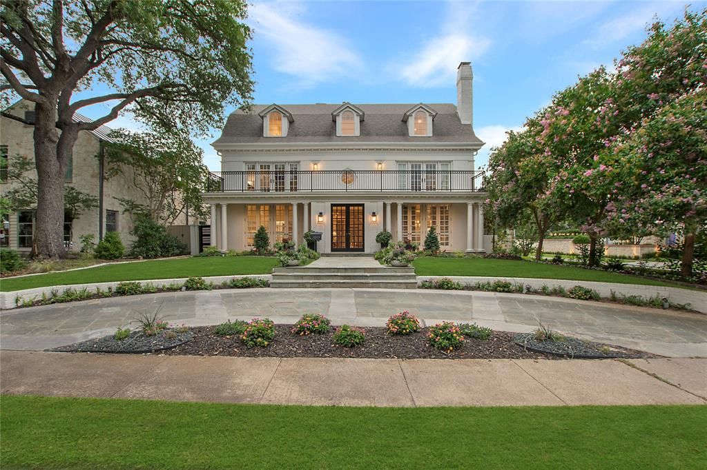 Commanding attention on its gorgeous 66' x 150' corner lot in prestigious University Park near Centennial Park, Curtis Park, University Park Pool, and the Volk Estates, this custom-built classic traditional home masterfully blends timeless architecture with refined transitional style and has been previously featured in Architectural Digest. The stately three-story brick home, with its Gambrel roof and surrounded by manicured landscaping and blooming crepe myrtles-offers a seamless blend of classic charm and elevated, transitional style-delivering effortless luxury from the very first glance. Step inside to soaring 10-ft. ceilings, rich hardwoods and an expansive central hall that anchors elegant entertaining spaces and intimate retreats. The formal living room, with its limestone fireplace and French doors, opens to a private outdoor oasis. Both with light-filled French doors opening to the outdoors, a formal dining room leads to a scenic side patio and a richly appointed library opens to a front porch-adding to the home's dignified charm. The chef's kitchen dazzles with white Carrara marble, a Wolf commercial range, and premium appliances-think SubZero, Thermador, Asko and Hoshizaki-flowing seamlessly into a cozy breakfast nook. With French doors opening to a front porch, the downstairs primary suite is a tranquil escape with its gorgeous spa-like white quartz and porcelain tile bath & custom walk-in closet. Upstairs, an oversized den, sitting room, 4 spacious bedrooms & a private guest suite with its own bath & adjacent kitchen offer space & flexibility. The 3rd floor reveals a game room, mirrored gym or playroom & a full bath-easily convertible to a 7th bedroom. Outside, a serene pool & spa-complete with soothing fountains, color-changing LED lights & surrounded by turf grass & honed limestone-invite relaxation & entertainment year-round. A 2-car garage with sliding gate completes this rare offering-an effortlessly elegant home in the heart of University Park.