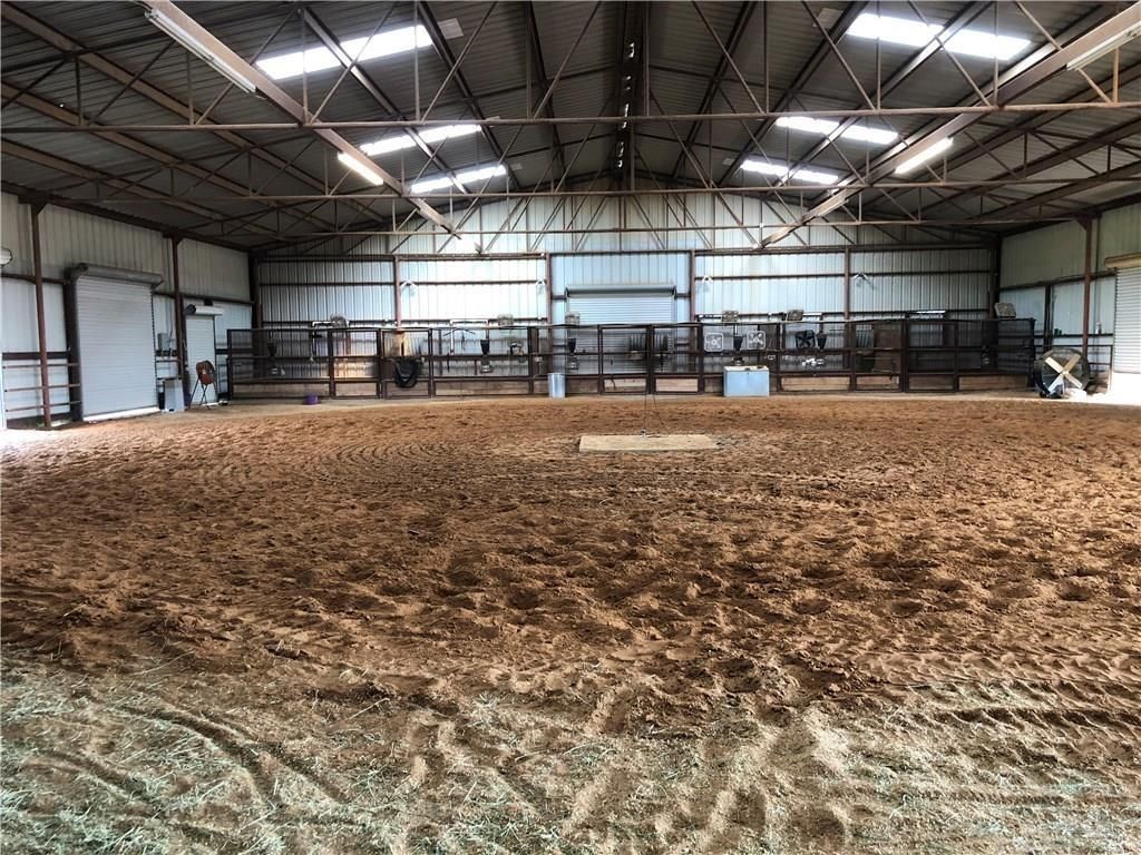Great for future development in a HIGH DEMAND area on FM 428, this beautiful 54.7 acres property is currently used as a Equine business with barns, round pens, & outdoor track pad. The Ranch style House has 3 bedrooms, 2 bth home with a converted garage for mudroom and full size office. Master Bedroom has ensuite, 2nd Bath is between bedroom 2 and 3. Back Porch overlooks equine facility. Gated entrance with access code. Pipe & cable fencing. Show Barn:21 stalls, Stud Barn:10 stalls with storage & room that can be converted to full lab. Shed Row: 7 stalls. Attached to the show barn is a covered area large enough for longeing or riding on cold or rainy days. 6 stalls that line the back wall of this attachment.