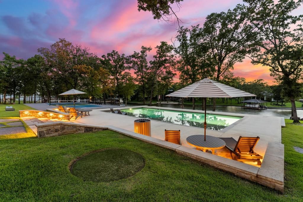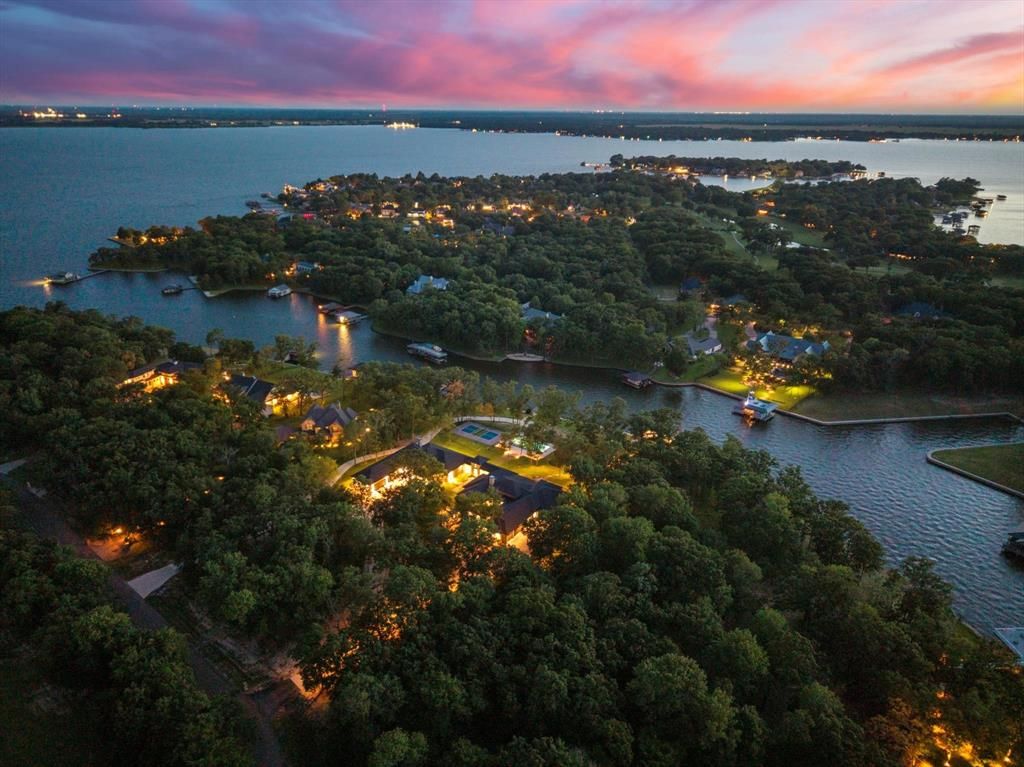 A rare opportunity to own one of the most extraordinary estates in Pinnacle Golf Club on Cedar Creek Lake. Spanning over three waterfront acres with 264 feet of premium shoreline, this exceptional property blends lakeside luxury with resort-style amenities, just over an hour from downtown Dallas. The main residence, built in 2022, offers a modern, open-concept layout ideal for entertaining, featuring four bedrooms, four full ensuite bathrooms, an office, guest half bath, and three-car garage plus a golf cart bay. The attached guest house, completed in 2025, mirrors the main home's quality and style with three bedrooms, three full bathrooms, guest half bath, and its own four car garage. Together, the two homes provide just under 7,000 square feet of luxurious living space, complemented by over 2,500 square feet of covered outdoor living areas that showcase privacy and spectacular lake views. Outdoor features elevate this estate to a true lakeside retreat, including a large boathouse and separate fishing pier, private lakeside pool, private artificial turf putting green, outdoor kitchen and living area, and the only private pickleball court in Pinnacle Golf Club. Located just a golf cart ride to the clubhouse, tennis courts, and championship golf course, this property combines privacy, elegance, and access to one of the lake's premier communities. With high-end finishes throughout, outdoor shower, spacious lakeside firepit, dedicated hammock area, and the guest house garage wired for a golf simulator, every amenity has been thoughtfully designed for luxury lake living at its finest.