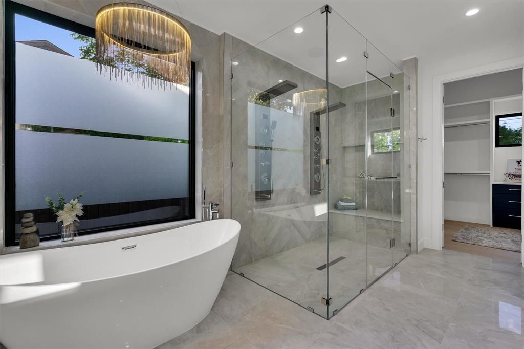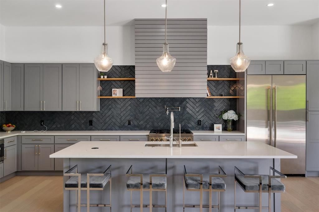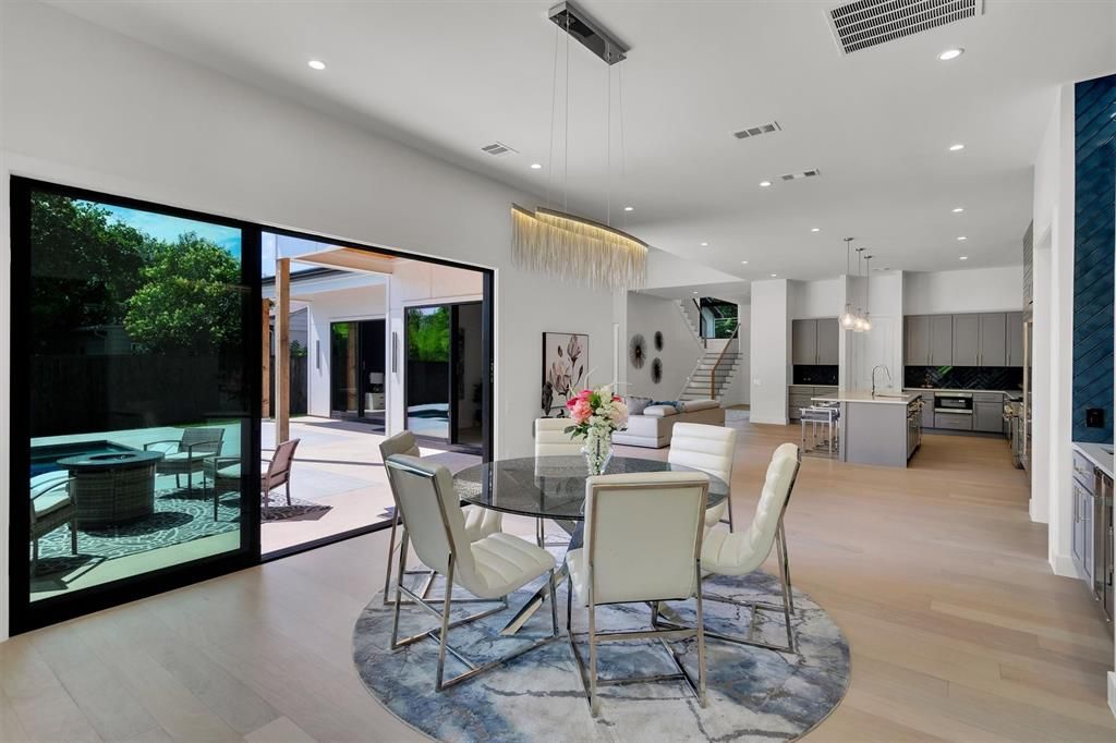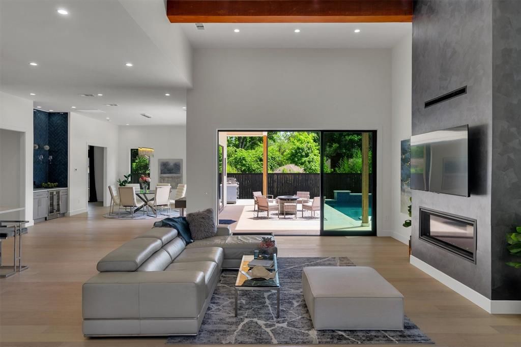You Found It! Welcome Home! Step into the grand entry and be captivated by the smart floor plan that flows through the house. This stunning new construction home by BPVHOMES features 12-foot ceilings, creating an airy atmosphere. The family room, with a fireplace and cathedral ceilings, is perfect for relaxation and entertaining. The chef's kitchen boasts an oversized island, Jenn Air appliances, and soft-close cabinets, ideal for family meals and gatherings. The main level includes a luxurious owner's suite, a home office, a guest room with an en-suite bathroom, a mudroom, and a half bath. Upstairs, a game room with a wet bar, a media room, and three additional bedrooms with en-suite bathrooms offer entertainment and comfort. Step out onto the balcony to enjoy serene views. This energy-efficient home with Brazilian white oak floors offers elegance and modern living.