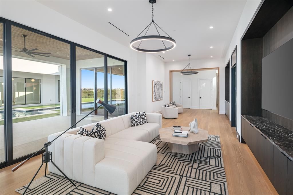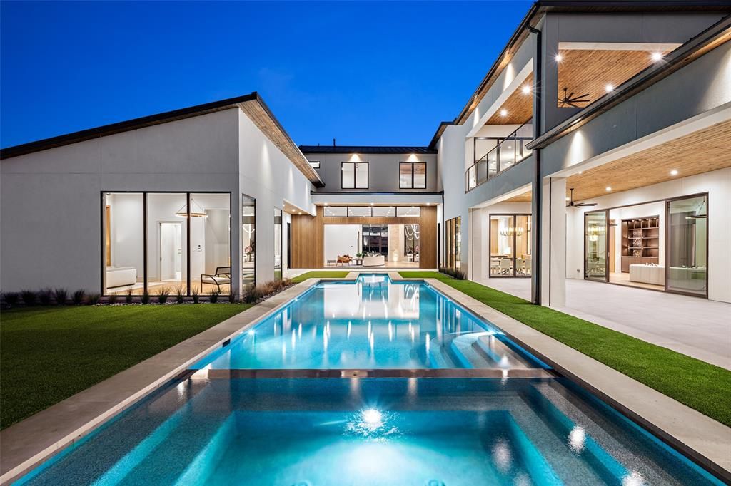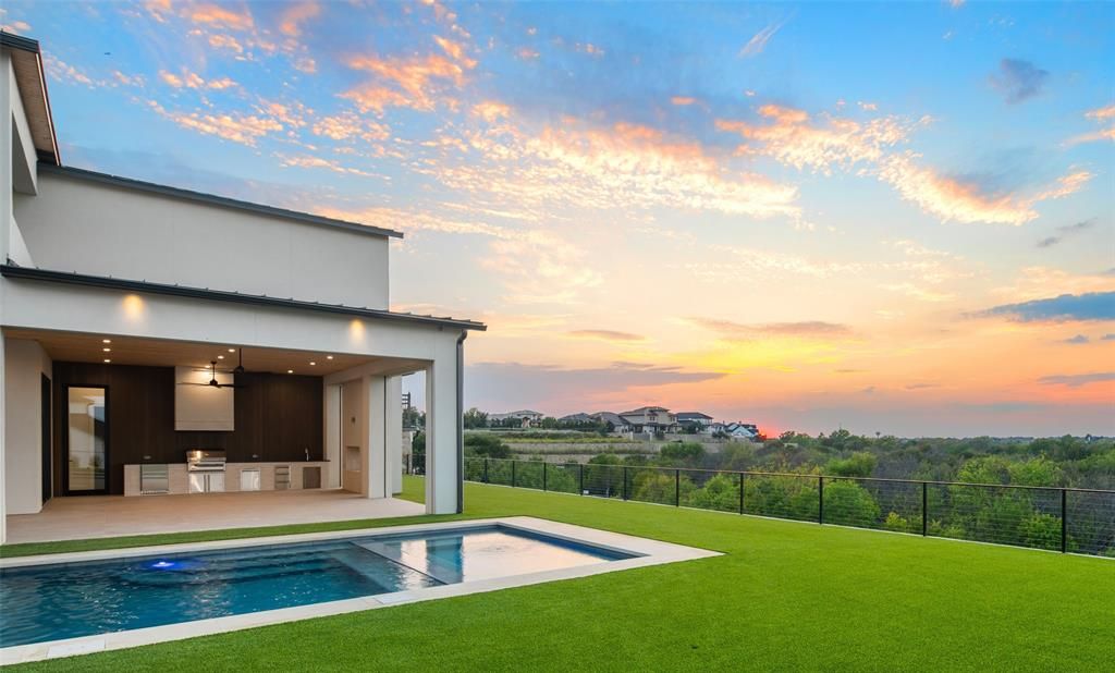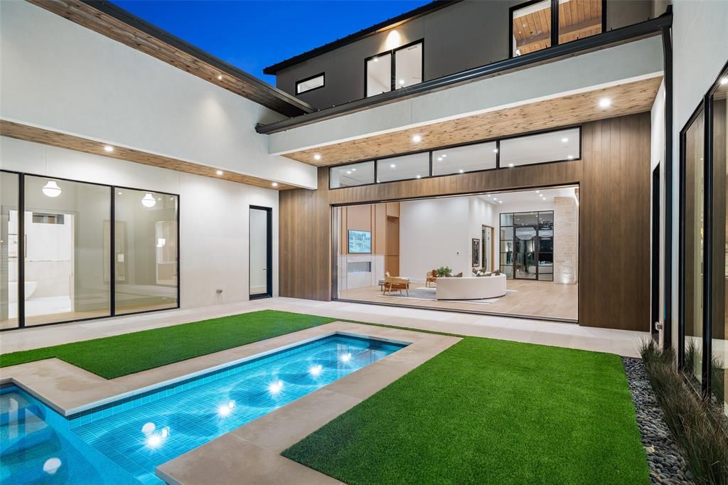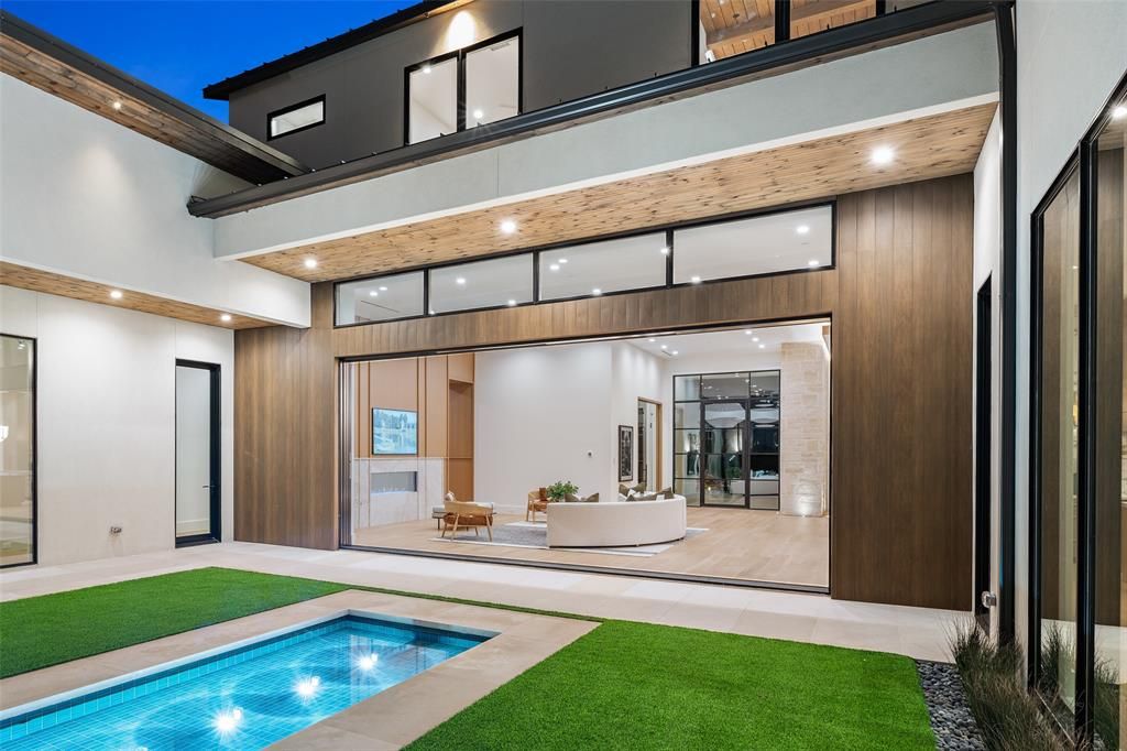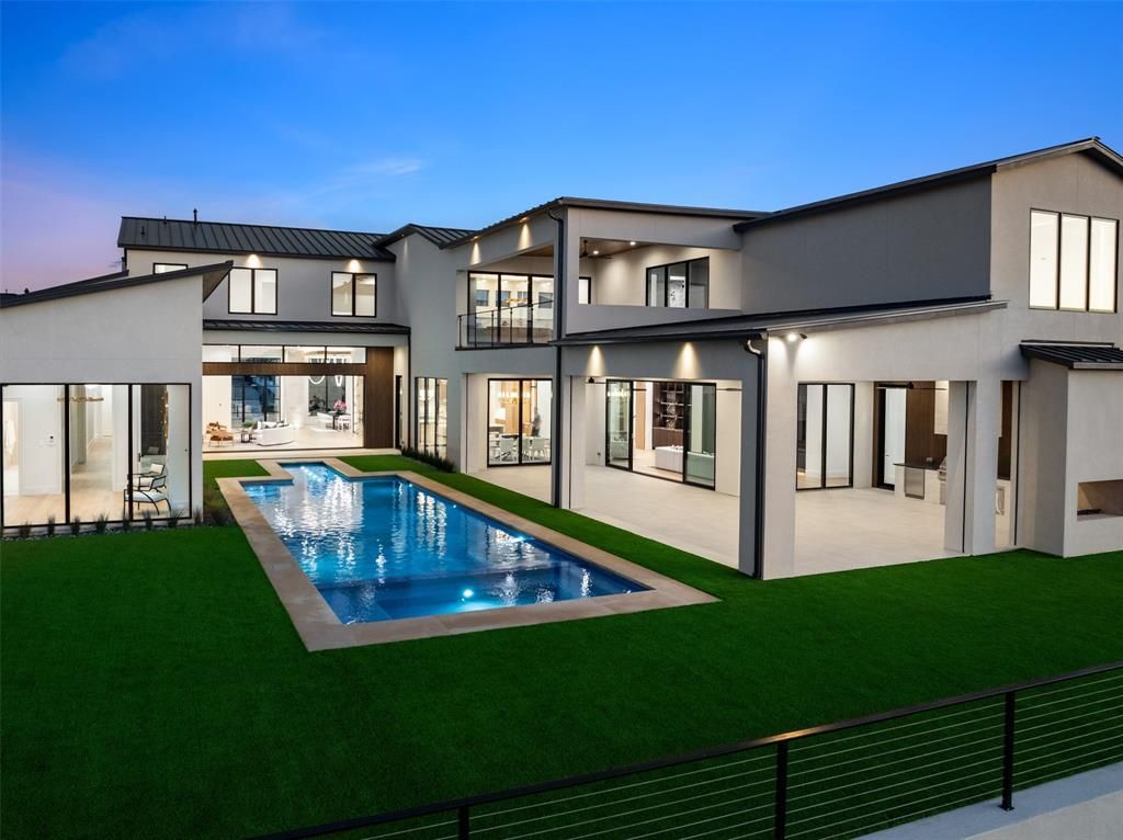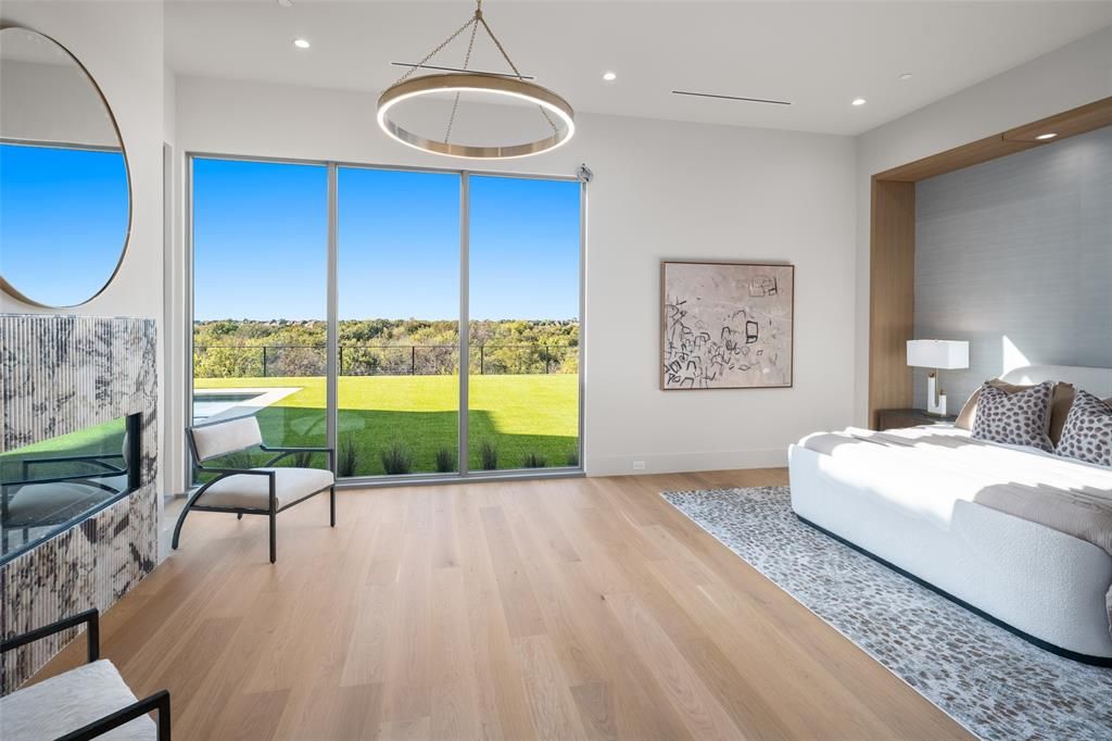 SPECTACULAR VIEWS greet you as you enter this warm, modern masterpiece. Situated on a private, elevated lot in the prestigious Hills of Kingswood "” a premier gated community in Frisco with 24-hour security "” this 9,906-square-foot home offers refined living with 6 bedrooms, 9 bathrooms, and 3 laundry rooms. A gated motor court offers additional privacy. Boasting panoramic views, this home blends elegance and innovation. The primary suite is a true retreat, featuring a spa-inspired bath with heated floors, a lavish soaking tub and expansive his and hers closet. Wellness is at your doorstep with an on-site workout center and rejuvenating steam shower. Designed for seamless entertaining, the residence boasts a dramatic 21-foot motorized pocketing slider opening to a spectacular 60-foot pool. The outdoor living experience continues with a fully equipped kitchen, fireplace, and multiple sitting areas. The backyard features premium artificial turf, tiered levels, and a private putting green. Upstairs, a balcony captures breathtaking views, providing the perfect backdrop for morning coffee or evening relaxation. Every detail of this one-of-a-kind home has been thoughtfully crafted for luxury living. This home is move in ready with construction scheduled for completion in October 2025.