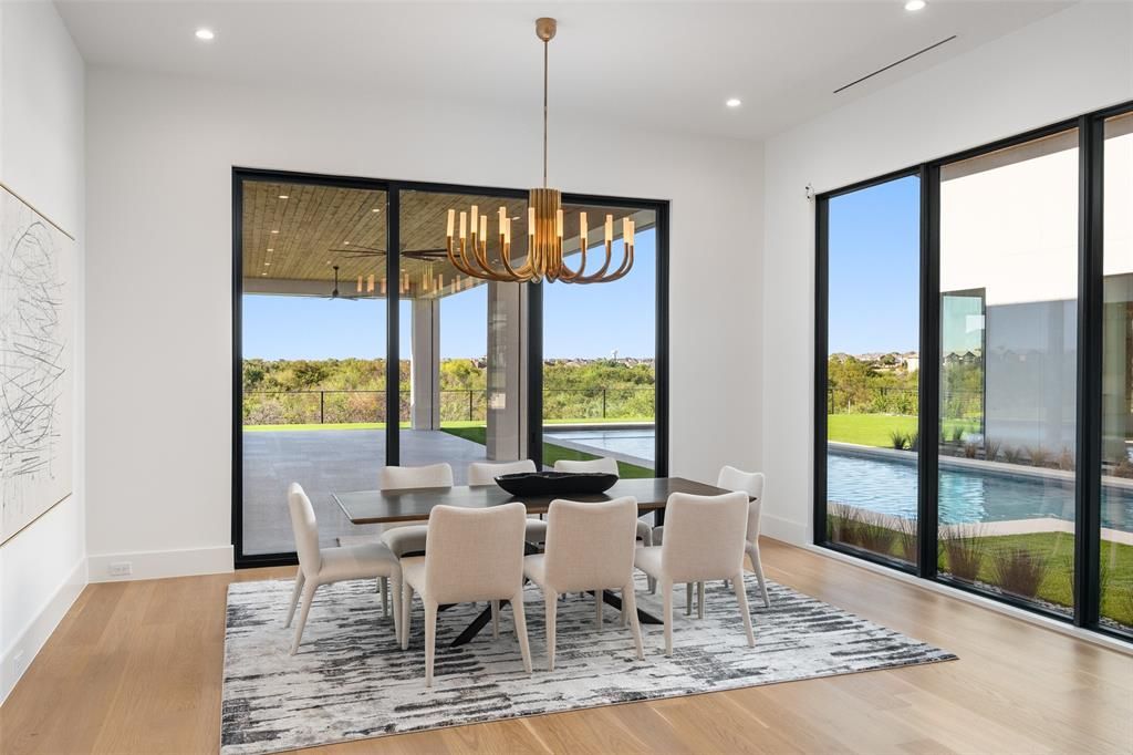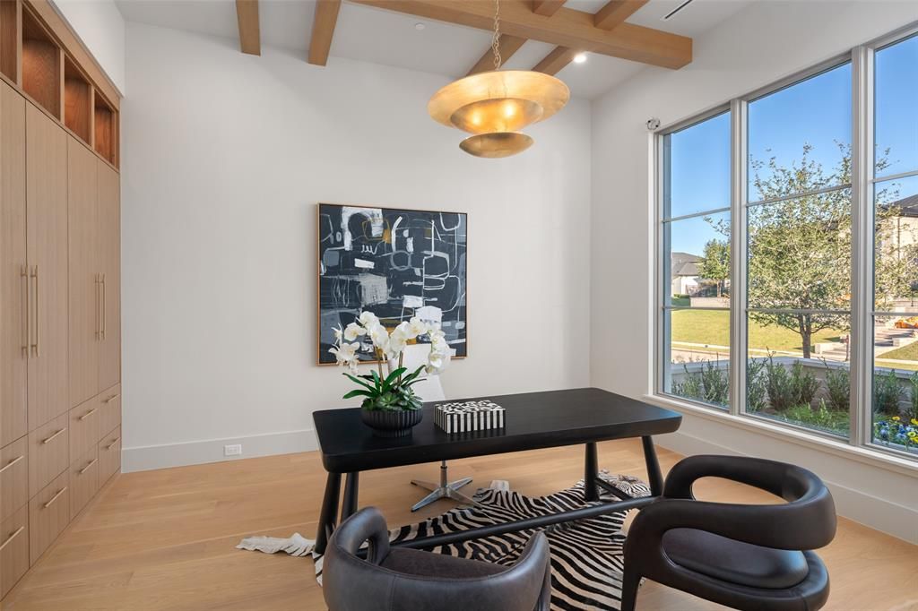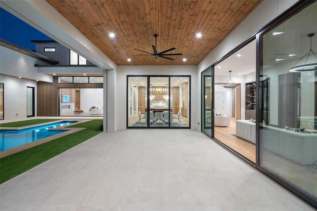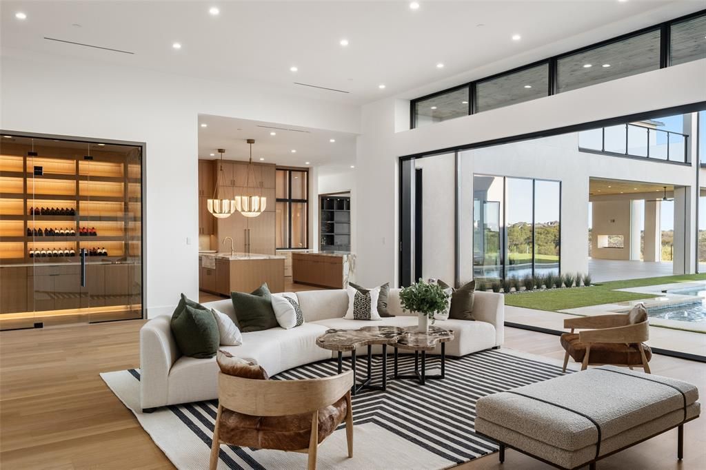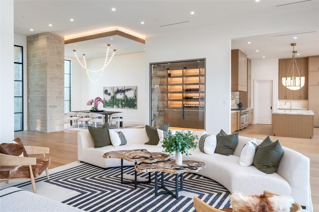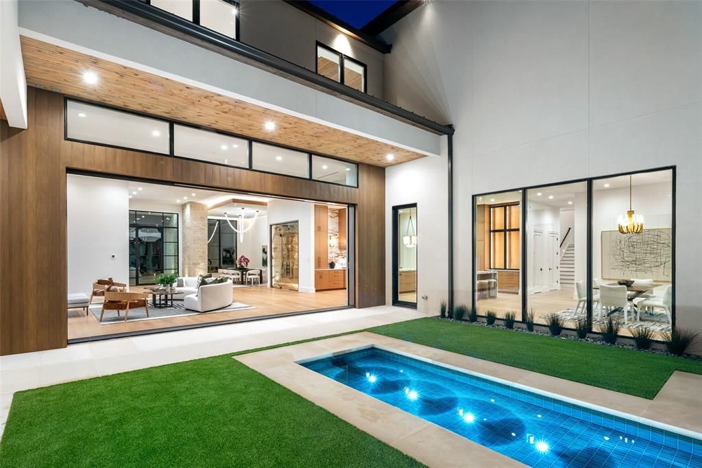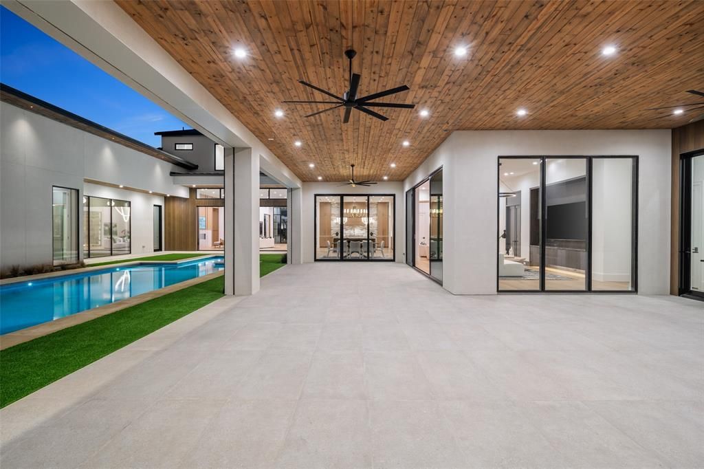 SPECTACULAR VIEWS greet you as you enter this warm, modern masterpiece. Situated on a private, elevated lot in the prestigious Hills of Kingswood "” a premier gated community in Frisco with 24-hour security "” this 9,906-square-foot home offers refined living with 6 bedrooms, 9 bathrooms, and 3 laundry rooms. A gated motor court offers additional privacy. Boasting panoramic views, this home blends elegance and innovation. The primary suite is a true retreat, featuring a spa-inspired bath with heated floors, a lavish soaking tub and expansive his and hers closet. Wellness is at your doorstep with an on-site workout center and rejuvenating steam shower. Designed for seamless entertaining, the residence boasts a dramatic 21-foot motorized pocketing slider opening to a spectacular 60-foot pool. The outdoor living experience continues with a fully equipped kitchen, fireplace, and multiple sitting areas. The backyard features premium artificial turf, tiered levels, and a private putting green. Upstairs, a balcony captures breathtaking views, providing the perfect backdrop for morning coffee or evening relaxation. Every detail of this one-of-a-kind home has been thoughtfully crafted for luxury living. This home is move in ready with construction scheduled for completion in October 2025.