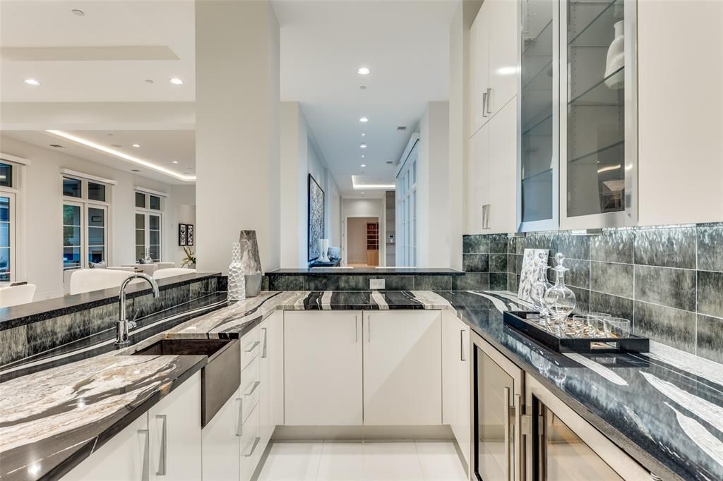 Nestled on a prime corner lot in the heart of prestigious Bluffview, this exceptional estate spans nearly half an acre and defines timeless sophistication, privacy, and architectural excellence. Offered for the first time, this 2016 custom-built by Phillip Jennings Custom Homes residence has been meticulously designed with an uncompromising eye for detail"”where modern refinement meets elevated everyday living. Crafted for both grand-scale entertaining and intimate comfort, the home features 6 bedrooms, 7.3 bathrooms, a formal office suite, gym, and expansive indoor-outdoor living areas. A dramatic living room with soaring ceilings and a statement fireplace anchors the open-concept design, flowing seamlessly into the chef's kitchen"”equipped with professional-grade appliances, a full-service bar, and a generous butler's pantry. The private primary suite on the main level serves as a tranquil retreat, complete with spa-inspired amenities. Upstairs, secondary bedrooms offer en-suite privacy and are joined by a versatile game room and fitness space. Surrounded by lush, manicured grounds, the outdoor living experience includes multiple gathering spaces, ideal for both entertaining and quiet relaxation. Located just minutes from Dallas' most renowned private schools, elite dining, luxury shopping, and premier FBOs at Love Field and Addison Airport, this residence combines location, design, and lifestyle at the highest level. This home is enhanced by too many features to list starting with automatic shades, steal reinforced tornado-safe room, full home Generac generator, oversized four car garage, multiple outdoor kitchen areas, Wi-Fi lighting, steam shower and more. This is a rare opportunity to own one of Bluffview's finest homes"”crafted with intention, and ready to inspire.