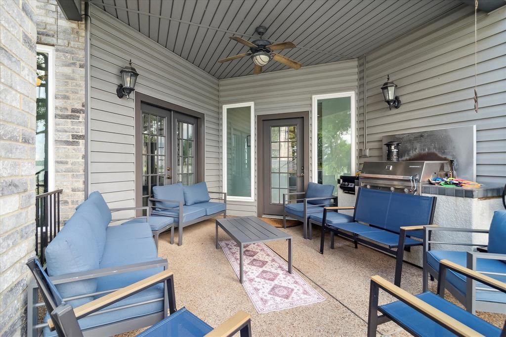 Stunning Lakefront Fully furnished Home on Wide Open Water with Panoramic Lake Views located in ROCKWALL COUNTY, ROCKWALL ISD! Property Features: Concrete retaining wall, concrete party pad overlooking the lake, pool w lake views, outdoor kitchenette w grill and refrigerator. The interior boasts spacious living w panoramic lake views from the plentiful windows found throughout the home, allowing tons of natural light to shine through. The huge island kitchen with plentiful cabinets and a walk-in pantry is sure to be a delight for the chef in the family. The primary suite is located upstairs, boasting a WIC, dual vanities, a separate shower, and a jetted tub. Conveniently Located within 15 minutes of PGBT and I-30 for all of your traveling needs. House comes with furniture, refrigerator, washer and dryer.