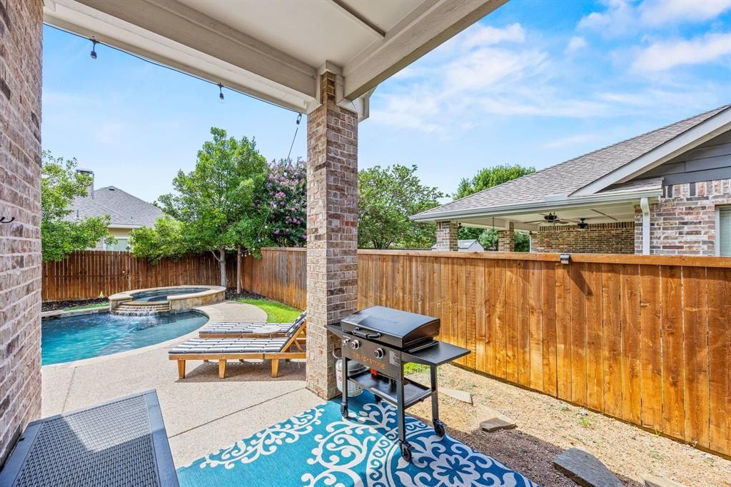 Charming, Upgraded, and Ideally Located in Village Park! Great curb appeal welcomes you home with a classic brick and stone elevation, mature landscaping, and a covered front porch that invites guests to relax and stay awhile. Nestled on a quiet, interior lot in McKinney's sought-after Village Park, this beautifully maintained 4-bedroom, 3.5-bath pool home offers elegant living spaces, thoughtful upgrades, and unbeatable convenience. Inside, charm abounds"”from rich hardwood floors to designer lighting and soaring ceilings that fill the home with natural light. Just off the entry, a private study with French doors and a formal dining room set the tone for comfortable yet elevated living. The spacious living room with fireplace flows seamlessly into the open-concept kitchen and breakfast area, ideal for everyday life and entertaining alike. The well-appointed kitchen features custom cabinetry, granite countertops, stainless steel appliances, gas cooktop, island, and plenty of storage and prep space"”truly the heart of the home. The first-floor primary suite offers a private retreat with serene views of the backyard, a luxurious ensuite bath, and ample closet space. Upstairs, you'll find a large second living area, three generously sized bedrooms, and two full baths"”giving everyone space to spread out. Step outside to your private backyard oasis, complete with a sparkling pool and spa, extended patio, lush landscaping, and plenty of room to entertain or unwind. Located in an established neighborhood with mature trees, this home is just a short walk to Lindsey Elementary and minutes from 121, 75, and DNT"”making commutes, errands, and dining out effortless. This is more than just a house"”it's a lifestyle in one of McKinney's most desirable communities!
