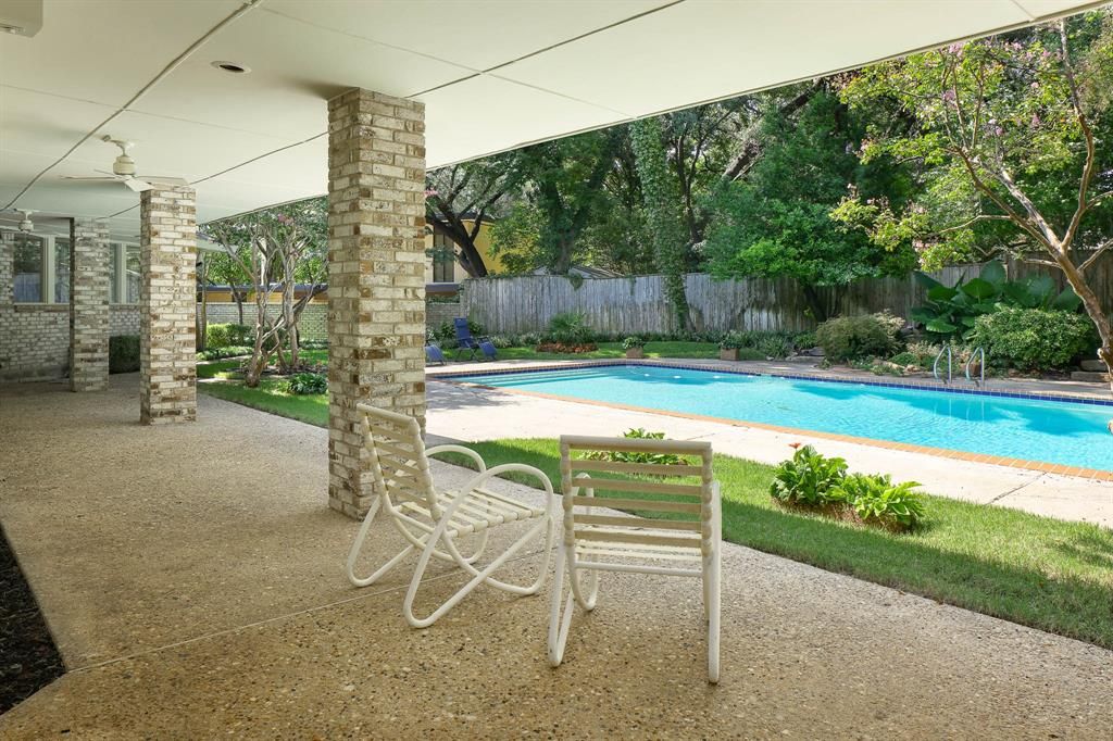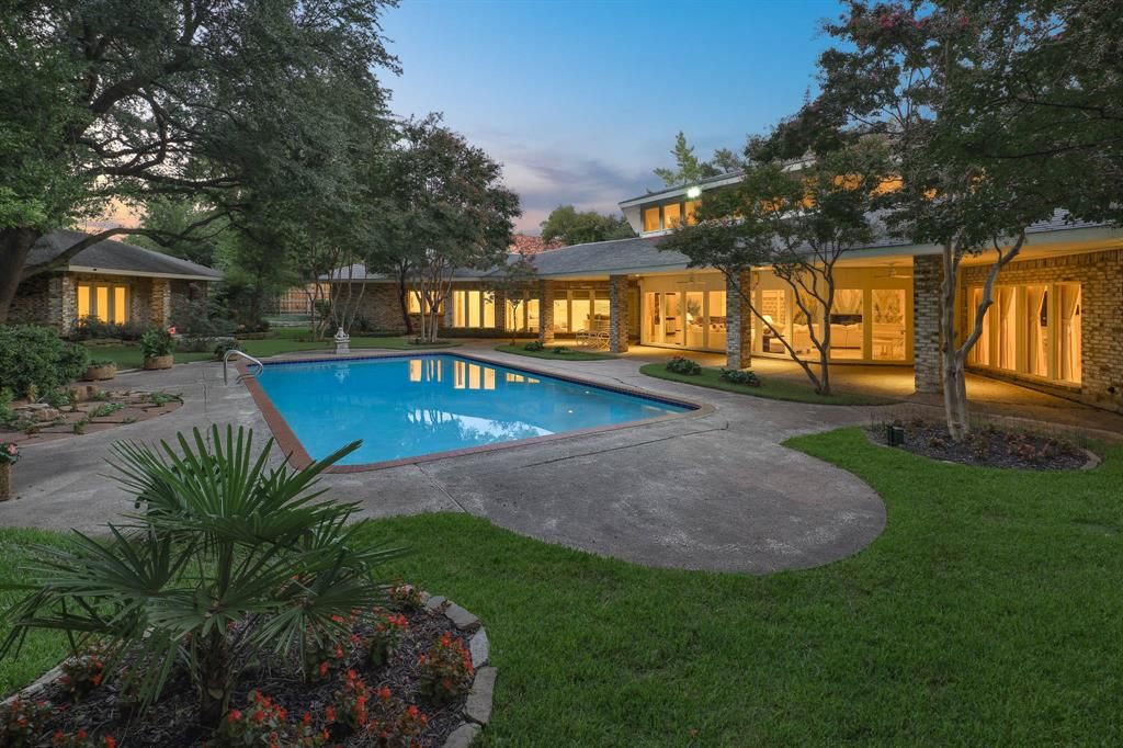 Offered for the first time since 1985, 5045 Lakehill Court is a rare piece of architectural history"”designed and built as the personal residence of noted Dallas developer Hal Anderson. Set on a secluded, one-acre cul-de-sac lot in the heart of Preston Hollow, this 1973 mid-century showcases the hallmarks of Anderson's iconic design and impeccable build quality: single-story layout with dramatic entry, extensive marble flooring, walls of glass, and seamless flow between indoor and outdoor living. In addition to the 6,881 sf main house, is an updated 600 sf, air-conditioned pool house with full-bath, as well as a 900+ sf updated guest quarters--with two bedrooms, full-bath, living area and kitchen, so a total of 8380+ sf of air-conditioned space. An additional full-bath is included in the 3 car garage. At the heart of the home, the expansive great room is a showstopper"”anchored by a soaring two-story bookmatched marble fireplace, beautiful white porcelain floors, and floor-to-ceiling windows that flood the space with natural light and overlook the serene backyard. Perfect for entertaining, the open layout opens from the great room to mirrored dining room and wet bar. The north wing of the home includes 3 generously sized bedroom suites. The primary suite features a sitting area, dual baths and walk-in closets and access to the patio. Each secondary bedroom includes a private bath and walk-in closet. A fourth bedroom suite sits on the opposite side of the home and includes its own private courtyard and full-bath, while the fifth bedroom with full-bath is ideal for guests. Designed for entertaining, the home opens to a wraparound terrace, beautiful pool, and lush landscaping offering exceptional privacy. The numerous old-growth Live Oak specimen trees make this setting unique! This remarkable estate is a timeless expression of Hal Anderson's signature style, brought to life in a private and secluded setting that's as livable today as it was visionary in its time.