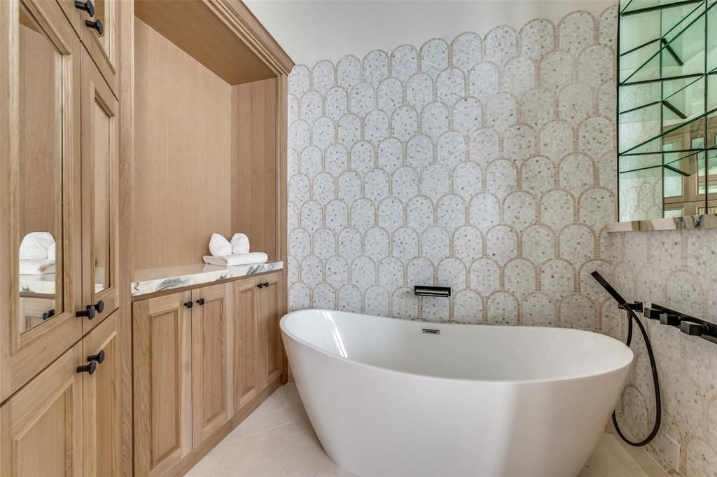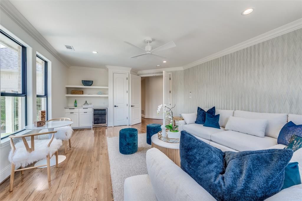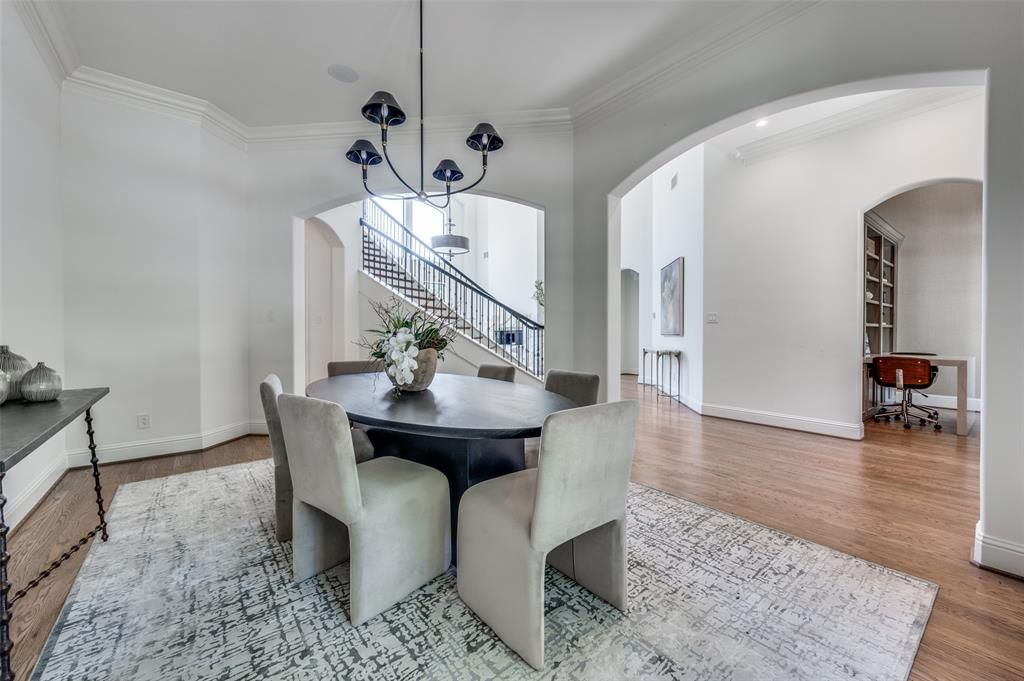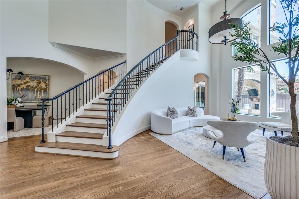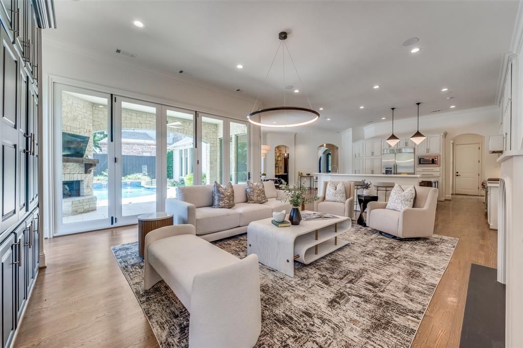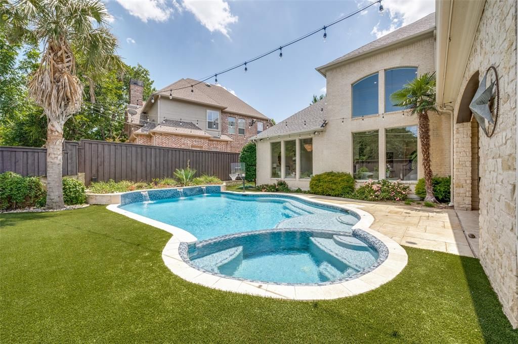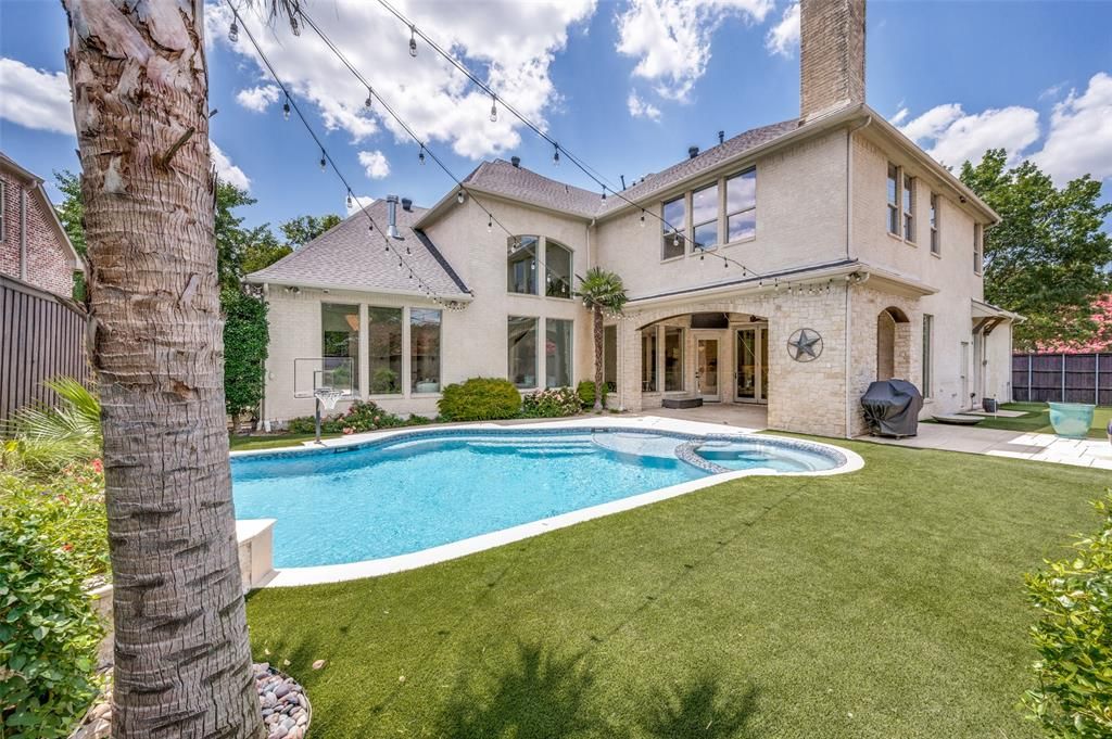 Stunning 6-bed, 5.1-bath transitional set on a prime lot with 5,696 SF of luxury living. Features include a first-floor primary suite and guest room, open-concept chef's kitchen, and spacious game and media rooms upstairs. Each bedroom offers an en-suite bath. Exceptional outdoor living with a covered verandah, pool, built-in grill, trampoline, and custom fort"”perfect for entertaining and family fun. Three-car garage and direct access to the Northaven Trail for biking and walks. A rare blend of elegance and lifestyle.