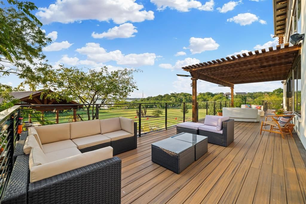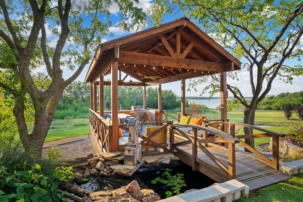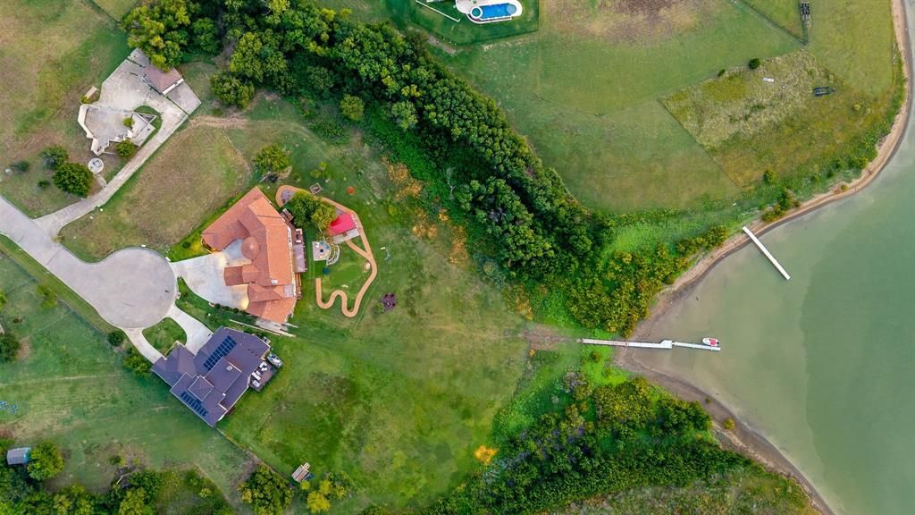Experience luxury lakeside living at its finest. This 6,316 sq ft custom-designed estate offers an unmatched blend of elegance, comfort, and resort-style amenities perfectly positioned on the tranquil shores of Lake Lewisville. Enjoy panoramic lake views from nearly every room, and wake up each day to breathtaking sunrises, abundant wildlife, and the peaceful rhythm of waterfront living, all just minutes from city conveniences. Inside, soaring 26-foot ceilings, hand-selected finishes, and walls of windows frame the expansive living spaces. The chef's kitchen is fully equipped with premium appliances, including two Miele dishwashers, a DCS range, Liebherr refrigerator and freezer, and a walk-in pantry and seamless flow to the open-concept entertaining areas. The primary suite is a true retreat with a spa-inspired bath and a custom storm-shelter walk-in closet. 2 Additional en-suite bedrooms downstairs, a private studio with exterior access, and an artistic wine cellar add both function and flair. Upstairs, enjoy a game room with full bar, home theater, and two additional bedrooms, including one designed as a dedicated gym and another with its own private terrace and pergola. Step outside to your private oasis. The meticulously manicured grounds are a testament to proud ownership! Enjoy the koi pond with waterfall, rustic gazebo, three-hole putting green, and 130 feet of direct lake frontage with a private dock, perfect for boating, fishing, or sunset views. The 4-car collector's garage includes space for lifts and a professional workshop. Built with 18-inch walls and envelope insulation, this home is not only stunning, but energy-efficient. This is more than a home, it's a lifestyle. A rare opportunity to own a one-of-a-kind lakefront estate in one of the most desirable areas of DFW.