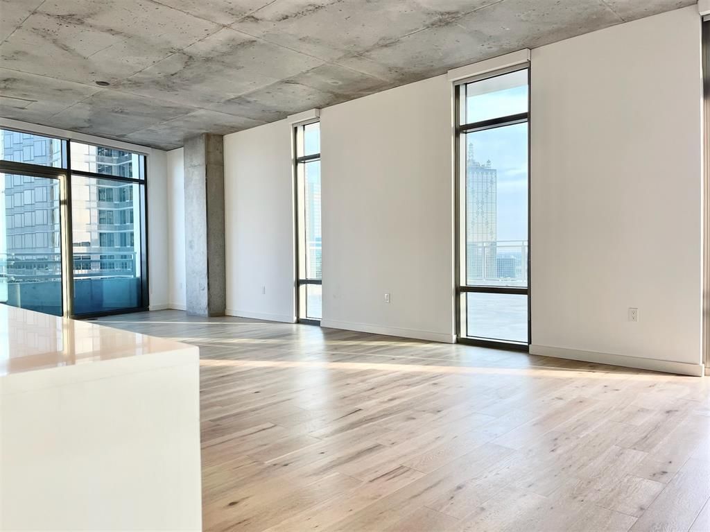 Welcome Home to the view of a lifetime! This unit gives you a unique opportunity to express your interior design skills. With striking two-toned finishes, concrete ceilings, hardwood flooring with no carpet throughout, this massive end unit gives you the perfect canvas to display a work of art. Enjoy panoramic views throughout the unit and capture an incredible sunset from the primary areas.