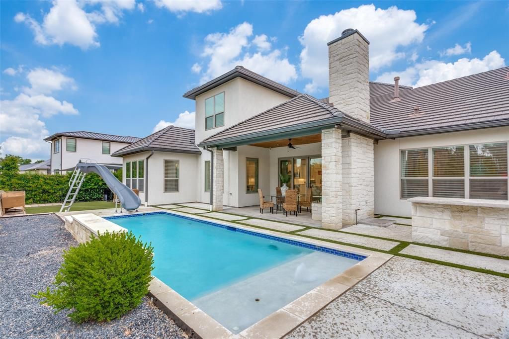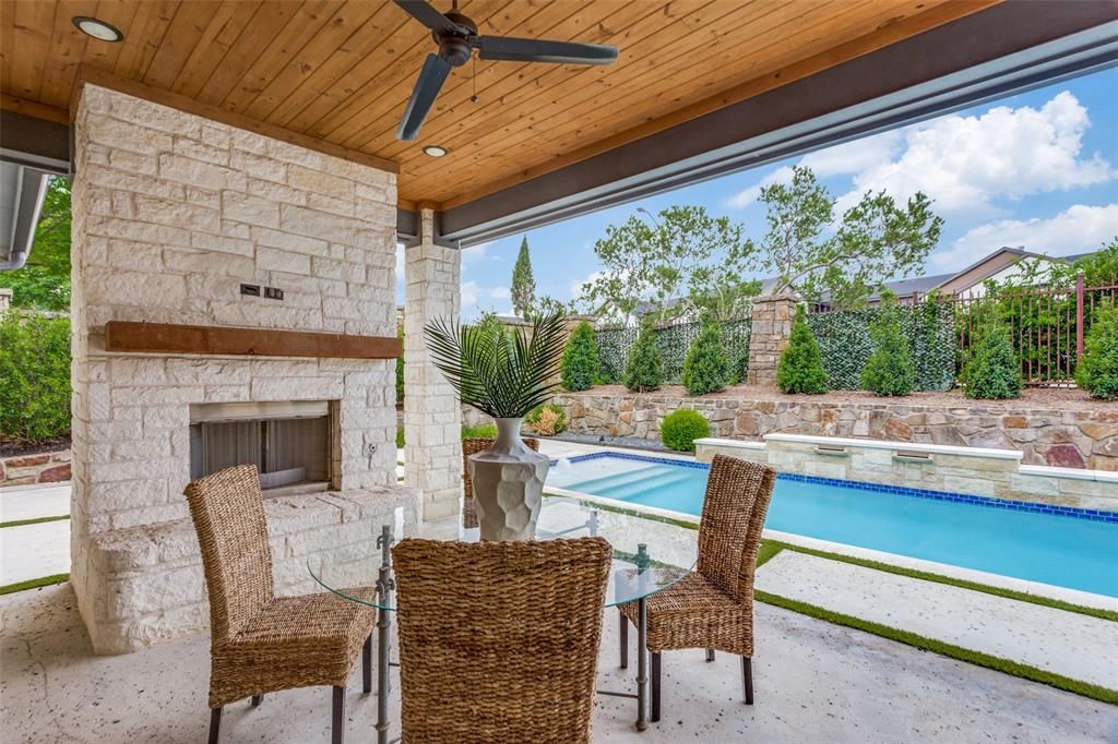 Located in the prestigious 24-hour guard-gated community of La Cantera at Team Ranch, this beautifully crafted home blends timeless elegance with modern comfort. The striking stone and stucco exterior is complemented by a classic tile roof, while inside, rich wood, tile flooring, crown molding, and designer lighting add warmth and sophistication. The open-concept kitchen, dining, and living area is perfect for entertaining, with seamless flow and stylish finishes throughout. A dedicated study and a versatile flex room"”ideal as a fourth bedroom"”are situated on the main floor along with the luxurious master suite. The master bath features quartz countertops, dual vanities, a jetted tub, a steam shower, and a huge walk-in closet. Additional highlights include a spacious utility room with sink and freezer space, a mudroom with built-in storage, and a two-car garage with cedar doors. Upstairs, a cozy loft living area is flanked by two generously sized bedrooms with en-suite baths. Step outside to a large, covered patio with a sparkling pool, fireplace, grill, and two wine coolers. A deal for year-round enjoyment. The beautifully landscaped yard has a full sprinkler system, creating a serene and inviting outdoor space. Just minutes from downtown with convenient access to I-20 and I-30, shopping, and private schools.