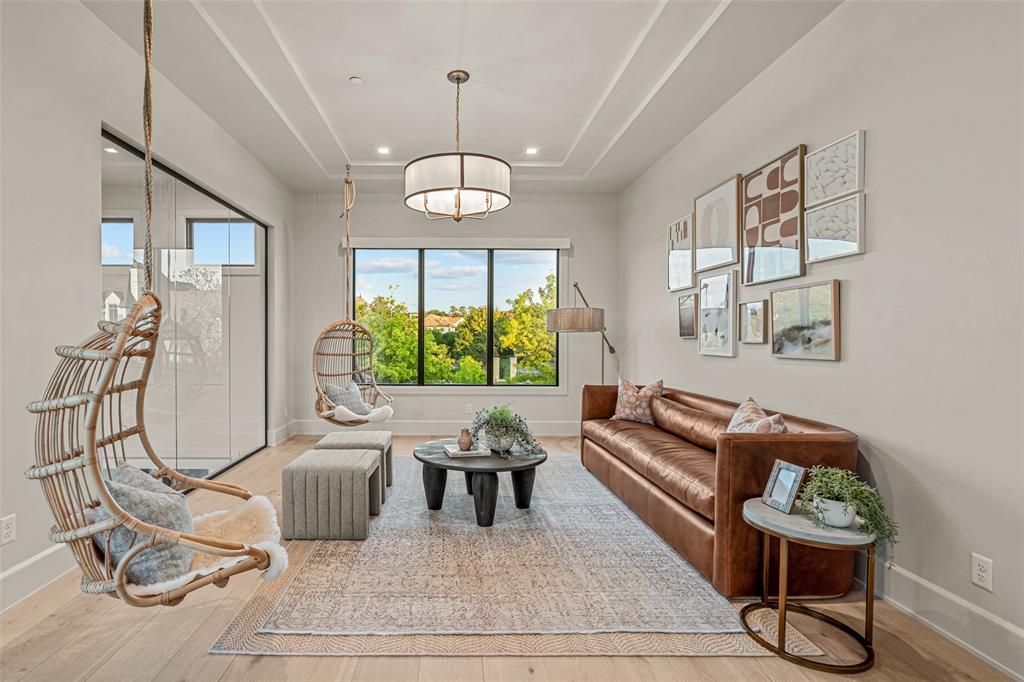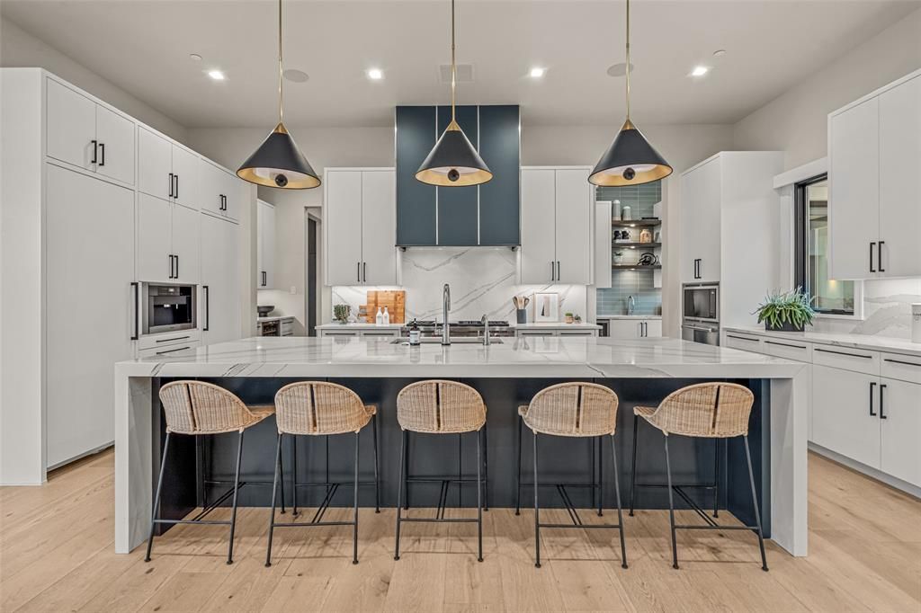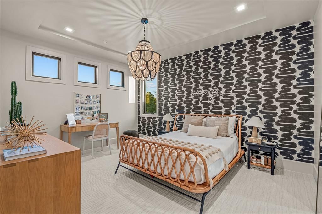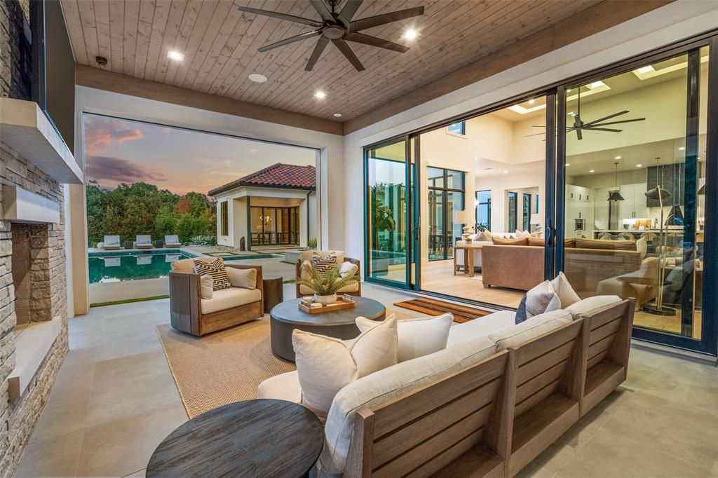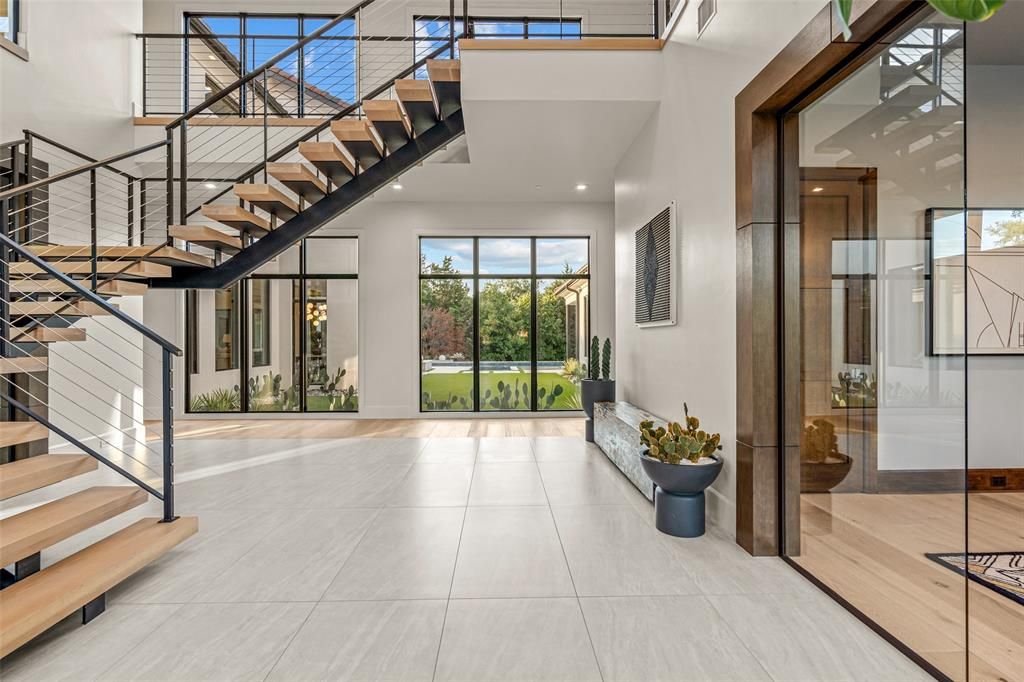 INCREDIBLE DeCavitte Santa Barbara-style estate on a full acre, perfectly positioned against a tranquil nature preserve and trails in the highly desirable gated community of Terra Bella. This architectural masterpiece blends timeless elegance with modern livability, offering 5 spacious bedrooms, 5.2 luxurious baths, and a 4-car garage. Every detail has been thoughtfully curated, from soaring ceilings to designer wallpaper and custom light fixtures that create an atmosphere of sophistication throughout. The chef's kitchen, open to the family room, is a dream for both cooking and entertaining, featuring Wolf and Sub-Zero appliances, dual dishwashers, a Miele coffee maker, soft-close cabinetry, quartz countertops, and a generous island. Wide-plank European white oak floors and a dramatic modern staircase add to the home's refined style. The owner's suite is a private retreat with a spa-like bath, morning bar, exercise room, and oversized closet. A first-floor media room and game room seamlessly connect to the outdoor sanctuary, where a sparkling Claffey pool and spa, turf lawn for low maintenance, and a fire pit create the perfect setting for year-round enjoyment. Families may also enroll in Exemplary Carroll ISD or Westlake Academy IB World school.