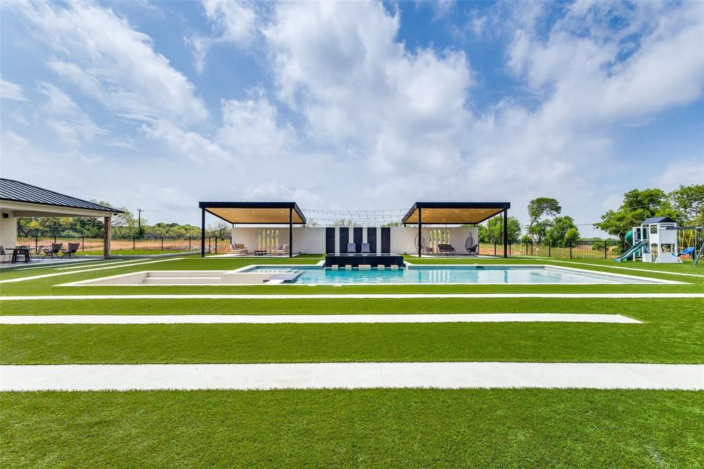 Extraordinary estate that offers an unparalleled blend of elegance, comfort & modern amenities, making it the ultimate dream home! The grandeur begins as you enter the stately foyer, leading to expansive living areas designed for both relaxation & entertainment. The gourmet kitchen, complete with top-of-the-line appliances & custom cabinetry, flows seamlessly into the inviting family room. Entertainment options abound with a state-of-the-art media room & a delightful kids' playroom with a climbing wall & clubhouse. Step outside to your private oasis featuring a sparkling pool & a fully equipped pool house with its own kitchen, ideal for hosting. Kids will love the in-ground trampoline! The backyard is enhanced by synthetic grass, ensuring a pristine landscape year-round. At the front of the property, a serene lake with a charming fountain adds a touch of tranquility. This magnificent home is a rare find, offering the perfect blend of sophistication & family-friendly features.