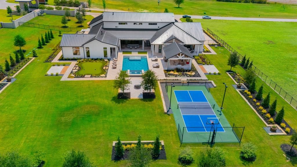 Showcase Home in Fleming Pointe - Luxury Redefined Now available in the exclusive gated community of Fleming Pointe, this stunning custom estate truly has it all. With 5 bedrooms, 5 full baths, 2 half baths, and a 4-car garage, the scale and detail of this home are nothing short of breathtaking. From the moment you step through the massive pivot glass front door, you're welcomed into a grand foyer. To the left, the executive study features floor-to-ceiling custom cabinetry, while straight ahead, the great room reveals a sweeping view of the home's extraordinary indoor and outdoor living spaces. The open-concept layout seamlessly connects the great room, formal dining area, and chef's kitchen, which boasts floor-to-ceiling cabinetry, a waterfall-edge island, and top-of-the-line appliances. A butler's pantry adds even more function with in-cabinet refrigeration drawers, glass-front cabinets, a second dishwasher, and custom storage. Nearby, a SAFE room offers peace of mind. The game room at the rear of the home includes a full wet bar and a passthrough serving window to the outdoor patio"”perfect for entertaining. Each of the home's five bedrooms has its own ensuite bath and walk-in closet, while the primary suite overlooks the resort-style pool and offers dual custom closets, a spa-like walk-in shower, and a deep soaking tub. Step outside to discover the ultimate outdoor living retreat, complete with: Custom swimming pool Putting green & fire pit lounge Full outdoor bar with pizza oven, grill, and TV Pickleball and basketball courts Outdoor shower and more This home was designed for those who demand the best in luxury, comfort, and lifestyle. To fully appreciate its richness, you simply must see it in person.