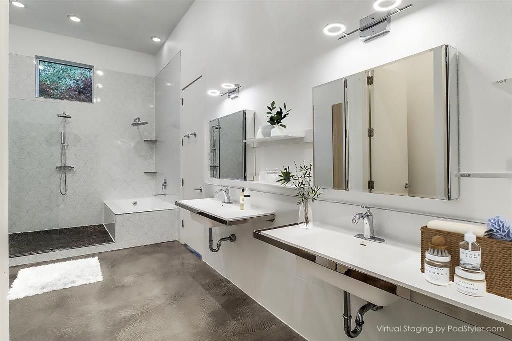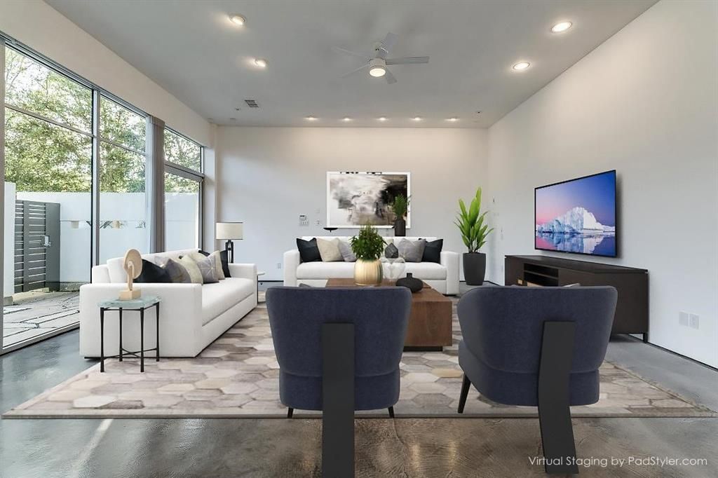 Nestled in a quiet culdesac in Diane Cheatham's eco-friendly visionary development Urban Reserve, is this spectacular modern home offering simplistic style in a trend setting design. Open floor plan with most of the living located on the 1st level with 12' ceilings, and stunning 50' glass wall overlooking private yard. Imported European kitchen featuring Miele 6 burner gas range, separate built-in 36in refrigerator and 36in freezer, 2 Bosch dishwashers and 8' white Krion island. Functional layout with 3 bedrooms including the master suite and 3.5 baths on the first floor. Upstairs houses additional living area with guest-suite quarters. Smart home with wifi enabled sprinkler-irrigation system, garage doors, security system, Nest thermostats, and living area lighting. Pre wired for TVs and surround sound in living areas and bedrooms. Refrigerator, freezer, washer & dryer, yard maintenance, pest control treatment contract included. Newly installed EV charger in garage.