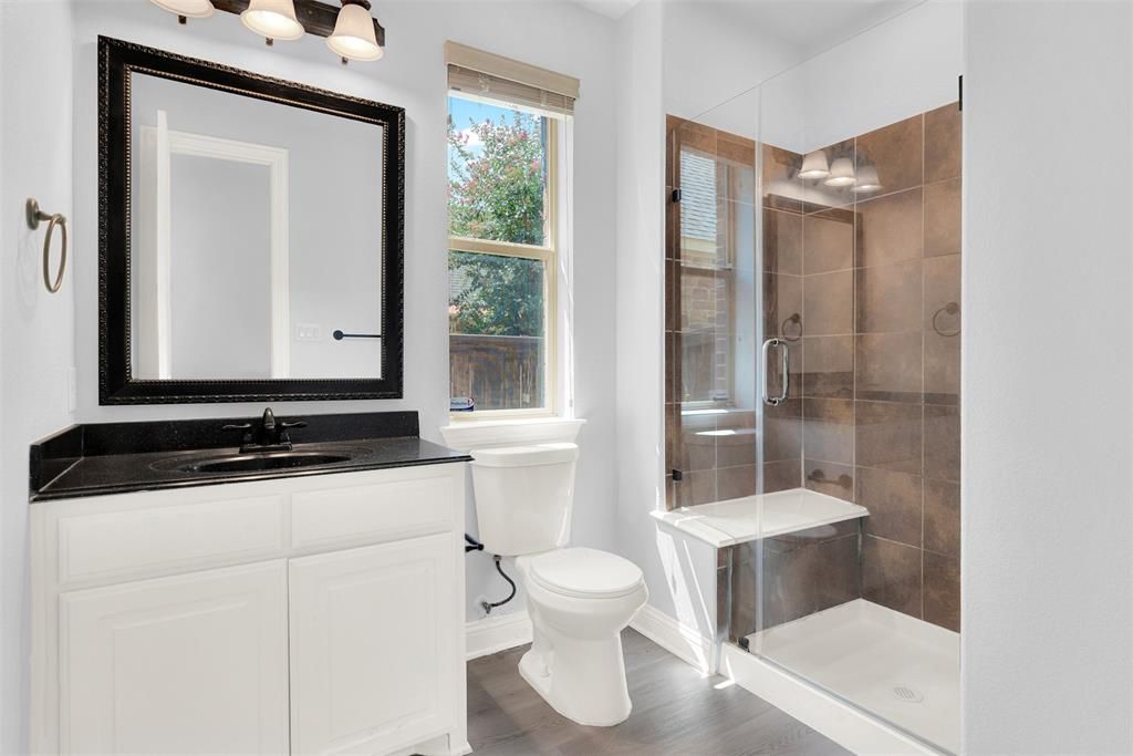 MOVE-IN READY! Nestled on a quiet interior lot in Prosper's sought-after Greenspoint neighborhood with no rear neighbors, this stunning 5-bedroom, 4-bathroom home blends elegance with everyday comfort. The striking brick and stone elevation, manicured landscaping, and side-swing three-car garage create timeless curb appeal. Inside, a grand oversized entry and sweeping staircase open to an inviting layout designed for both family living and entertaining. The first floor includes a formal living and dining room, private study, spacious primary suite, and a guest bedroom with an adjoining full bath. The expansive gathering room is a true showstopper, with a wall of windows overlooking the lush greenbelt and an impressive floor-to-ceiling stone fireplace. Throughout the home, you'll find custom built-ins, rich molding and millwork, and decorative lighting. The gourmet kitchen features a large island with upgraded granite, a KitchenAid 6-burner gas cooktop, abundant cabinetry, and a sunny breakfast nook. Upstairs, two oversized bedrooms share a Jack-and-Jill bath, while a large media room and adjacent game room"”plumbed for a wet bar"”offer endless entertainment options. Step outside to a covered patio and fully fenced backyard with plenty of green space for pets and play. Nestled in an established community with mature trees, this home offers an outstanding location minutes from the new PGA of America Headquarters, premier shopping and dining, and commuter routes including Hwy 380 and the Dallas North Tollway. Served by award-winning Prosper ISD. Call to schedule your private showing today!