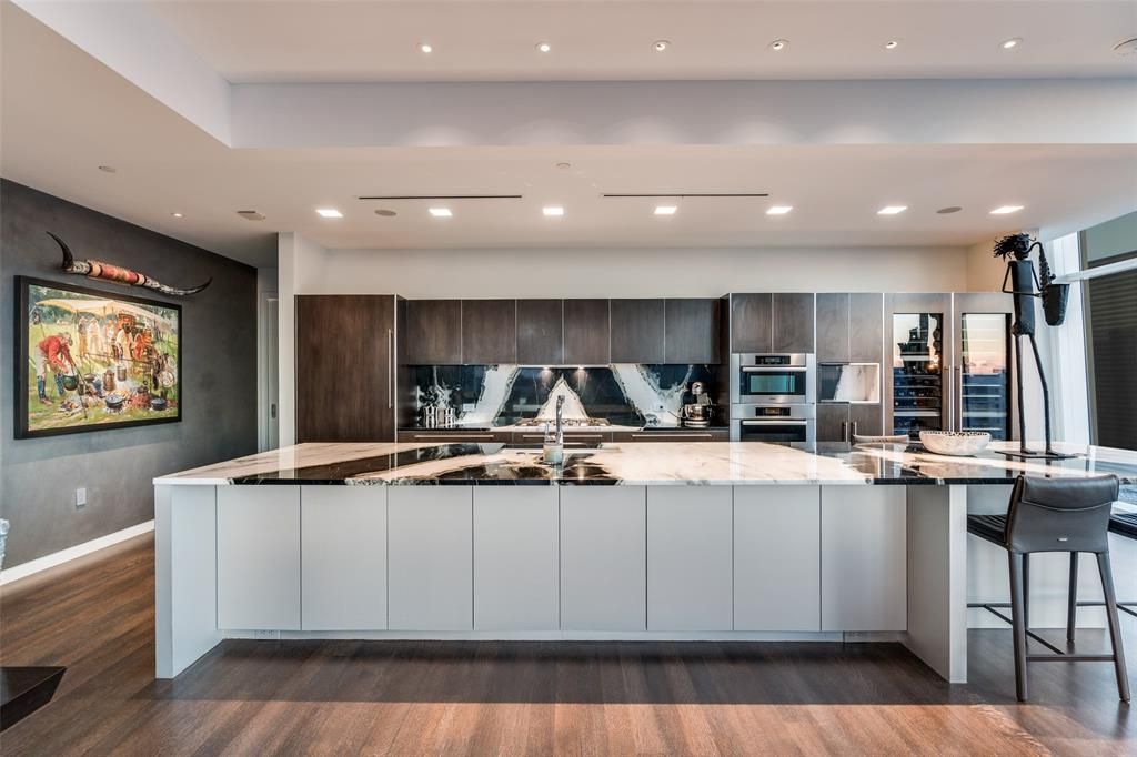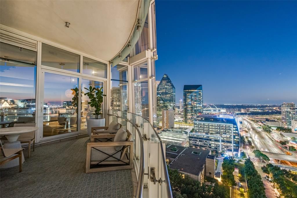 A rare opportunity, this north-facing Home 2401 at Museum Tower offers 3,745 square feet of refined living with panoramic views framed by floor-to-ceiling windows fitted with motorized shades. Venetian plaster walls in the entry set the tone for timeless sophistication. The open floor plan connects expansive living and dining areas to a chef-inspired kitchen showcasing a custom island with Basalt counters, Miele appliances including a gas cooktop, warming drawer, and dual wine refrigerators and deep drawers with a custom organization system. The butler's pantry elevates entertaining with stainless steel backsplash, additional prep space, Miele ice maker, and professional dishwasher. Majestic views of the iconic Dallas skyline, Klyde Warren Park, Uptown and the Dallas Arts District make every room a sight to be seen. A spacious sky room with integrated entertainment system creates an additional retreat for gatherings. The serene primary suite offers a walk-in Poliform closet and spa-like bath with heated floors, while the secondary suite provides equal comfort. Outdoors, a private terrace finished in limestone tile with pet guard extends the living space. Museum Tower curated services-amenities: 24-7 concierge-valet, 80-ft pool, great lawn, fitness room, saunas, guest suites, dog parks and more. World-class dining, shopping and entertainment promise an enriching urban experience.