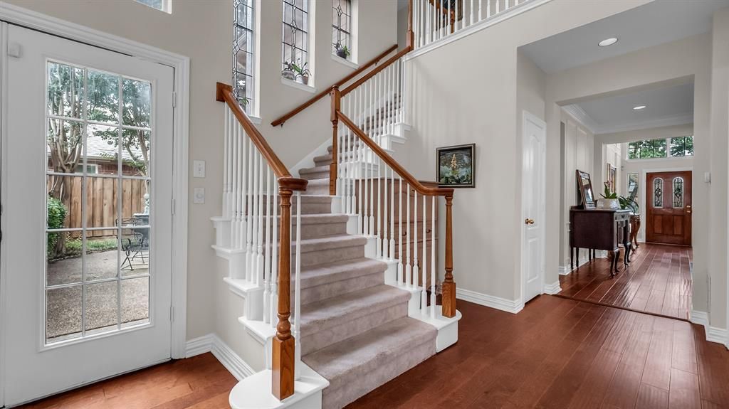 REDUCED FOR FAST SELLING, SIZE AND LOCATION! Welcome to this beautiful, open floor plan home! Amazing location! Near to some of the best schools in Plano ISD and walking distance to parks and trail. Living room boasts high ceilings & surround sound built into the ceiling. Immense Master Bedroom and Bathroom, which has a bathtub with jets to relax in. Spacious bedroom sizes. Game room is vast and open upstairs, as well as bathroom with two showers. Enjoy the hot summer in a relaxing pool and sizeable outdoor area, perfect for entertaining. Additional Quiet and private courtyard access from master bedroom separated from larger patio & pool area. Also for sale Minutes to Legacy West, HWY 121, Tollway, Stonebriar and Willow Bend Malls FURNITURE IS AVAILABLE FOR SALE.