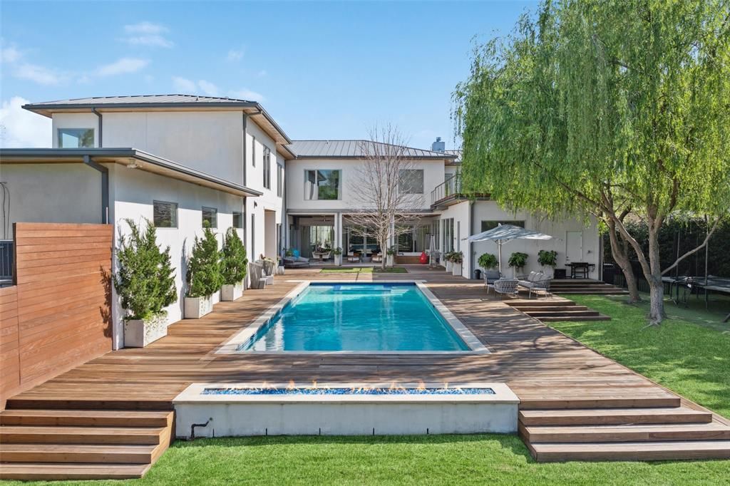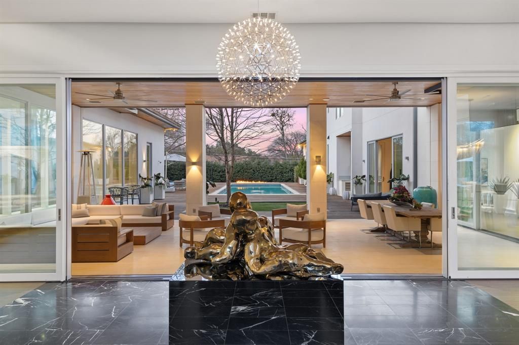Stunning custom-built 9,783 sq. ft. estate on nearly an acre exemplifies luxury living with its exquisite design and amenities. The grand marble entryway welcomes you into a home of sophistication and comfort, featuring 12-foot ceilings and multiple living areas with a cozy gas fireplace. The first-floor opens to a year-round heated and cooled outdoor loggia with remote screens. A formal dining room with a fireplace sets the stage for unforgettable gatherings. The gourmet kitchen delights culinary enthusiasts with top-of-the-line appliances, including a Sub-Zero fridge, Miele dishwashers, and a Gaggenau oven. The kitchen's center island and butler's pantry offer ample space for entertaining. Upstairs, the expansive primary suite is a luxurious retreat, complete with a gas fireplace, sitting area, coffee bar and two private verandas. The ensuite bathroom boasts dual vanities, a jetted tub, and an oversized shower with dual heads, complemented by two spacious walk-in closets. The second floor features a versatile game room and four additional bedrooms with private baths. This property has a unique safe room with an exterior exit, a wine room, two laundry rooms, an exercise room, a formal study, and a dog wash area. Outdoor amenities include a stunning pool, linear fire feature, and pickleball & sport court within a beautifully landscaped yard. The three-car climate-controlled garage offers epoxy flooring and loft storage. Smart home technology throughout includes Control4 thermostats, a HEOS music system, and remote window treatments, ensuring every modern convenience is at your fingertips.