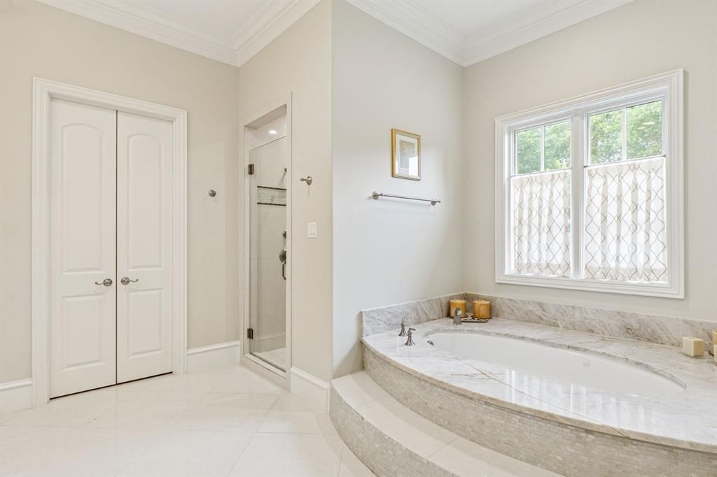 Timeless, classic Preston Hollow gated estate situated on a 2.54 acres overlooking Bachman Creek. This exceptional property custom built in 2014 by Robert Elliott spans over 10,867 SF and offers seven bedrooms, eight full bathrooms, and one half bath. This meticulously built home with six fireplaces, offers secluded privacy in the heart of the city with close proximity to private schools, Preston Center and other dining and shopping opportunities. An elegant two story foyer opens to formal living and dining rooms, both featuring gas fireplaces. Between the front formals and the back den and kitchen lies a stunning wet bar and wine tasting room, showcasing a barreled stone ceiling and temperature-controlled wine cellar. The den, with French doors, flows seamlessly to a covered patio"”ideal for both relaxed evenings and large-scale entertaining. The heart of the home is the expansive gourmet kitchen that opens to a gracious family room with two story vaulted and beamed ceilings. The culinary kitchen is complete with a large center island, Sub-Zero refrigerator & freezer, two Miele dishwashers, a Wolf gas range and four Wolf wall ovens. A sunlit breakfast room and a spacious butler's pantry add convenience and functionality. The first floor primary suite is a serene retreat, offering a sitting area, gas fireplace, and a spa-like ensuite bath with dual vanities, a jetted tub, and a generous walk-in shower. Upstairs, discover a game room with a wet bar, a media room, and five additional ensuite bedrooms. Additional features include an exercise room, playroom, two laundry rooms, wood-paneled study and gallery with sitting area. Outside, a private oasis awaits with a covered patio, built-in grill, and gas fireplace, all overlooking the peaceful, tree-lined backyard and creek. A gated, turfed area provides space for pets, while a large motor court and six-car garage complete this rare offering.