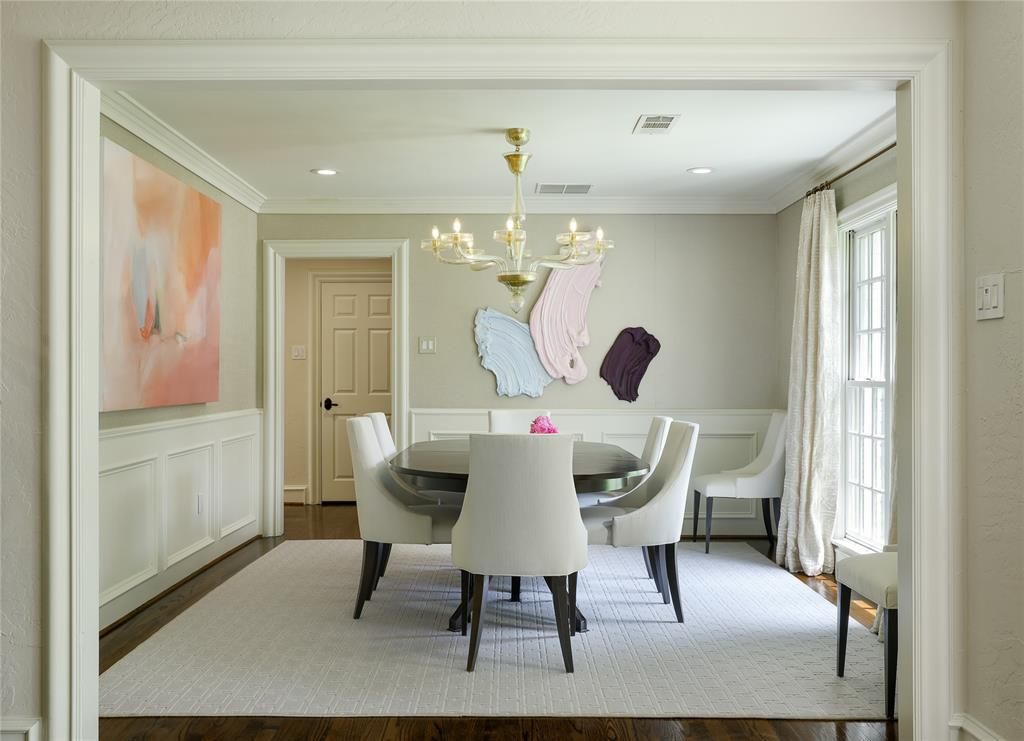 Sited on a premier 0.53-acre corner lot in the heart of Devonshire, 5460 Surrey Circle blends timeless tradition, undeniable charm, and luxurious finishes. Built in 1940 and expanded over the years, this elegant 5,950 SF home offers a classic floor plan, lush grounds, and thoughtful updates throughout. Recent enhancements include a whole-house generator, stunning 1,000+ bottle wine cellar, and a $600K+ landscape transformation with Lueders limestone hardscaping, zoysia grass, turfed play area, lap pool and mature trees. Inside, designer finishes impress and the traditional floor plan features formal living and dining rooms, a vaulted family room, and a private library opening to the backyard. Upstairs is a generous primary suite with sitting area, balcony overlooking the back yard, marble bath and walk-in closet. Across the hall are two additional bedroom suites with walk-in closets and timeless marble bathrooms. Up the back staircase is a 4th, private bedroom suite, a game room, and a built-in desk area. The primary bath was updated in 2021, all of the secondary baths were updated in 2018, and the kitchen and appliances have been updated in the last few years. With modern updates, classic architecture, and extraordinary outdoor living - all walkable to Lovers Lane and Inwood Village - this Devonshire gem is truly one of a kind.