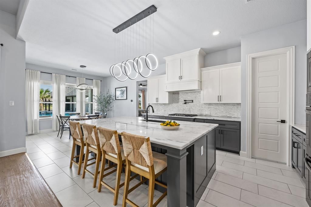 ACT NOW! Welcome to your own slice of Texas paradise"”perfectly crafted for multi-generational living, entertaining, and everyday luxury. This rare estate offers not one, but two full homes on an expansive 2-ACRE lot in the exclusive Northlake community of Stardust Ranch. Stunning curb appeal and resort-style backyard set the tone for this modern luxury retreat. The main residence is a custom 5-bed, 5-bath home designed with open living in mind. Soaring ceilings and walls of windows flood the space with natural light, while a 12-foot stone fireplace creates a dramatic centerpiece in the living room. The chef's kitchen is equally impressive with marble countertops, a large island with breakfast bar, mosaic backsplash, gas cooktop, and designer lighting that flows seamlessly into the breakfast nook. Hardwood floors run throughout, and a private office with French doors plus a state-of-the-art media room with surround sound, 120-inch screen, and 4K projector elevate the home's livability. The primary suite is a true retreat with raised ceilings, direct backyard access, and a spa-inspired ensuite featuring dual sinks, walk-in shower, and custom closet. The guest house offers 1,190 square feet of fully equipped living"”ideal for in-laws, extended family, or guests. It includes a full marble-counter kitchen, spacious living room, bedroom with ensuite bath, a second full bath with pool access, & a covered porch overlooking the backyard. Step outside to a backyard oasis built for entertaining. The fully fenced and landscaped grounds feature a sparkling saltwater pool & spa with waterfalls, slide, mood lighting, plus multiple outdoor living areas and an outdoor shower. A marble fireplace wall adds sophistication, while the covered patio with marble pavers is perfect for gatherings. With the space plumbed for an outdoor kitchen, this backyard is ready for year-round enjoyment. Situated in a prestigious neighborhood with quick access to I-35, local shops, dining, & schools.