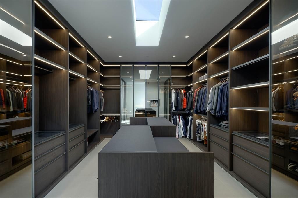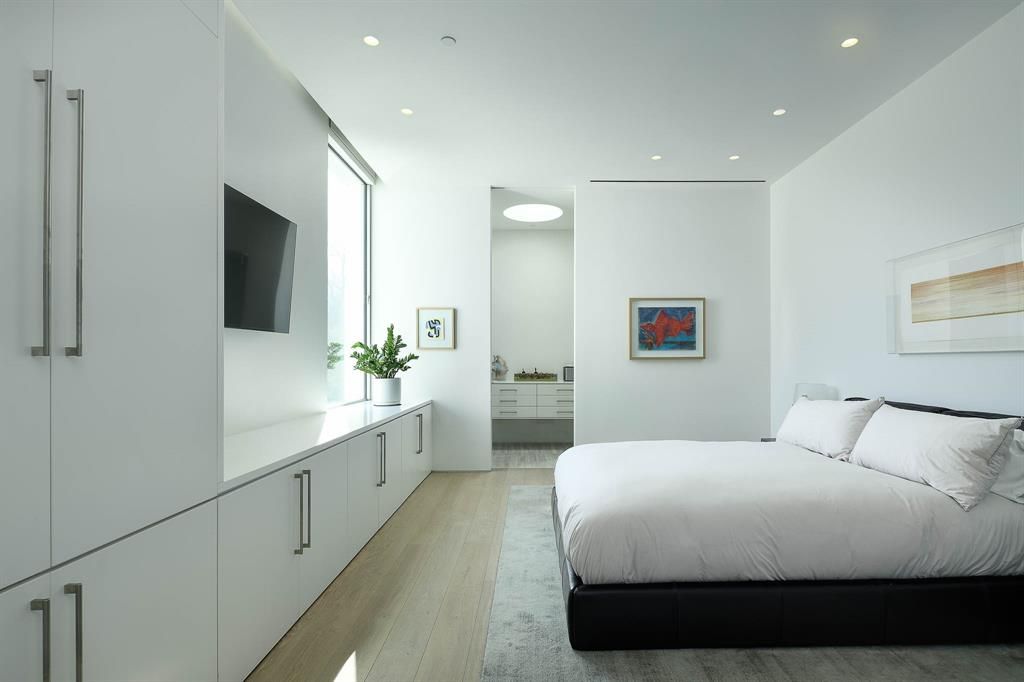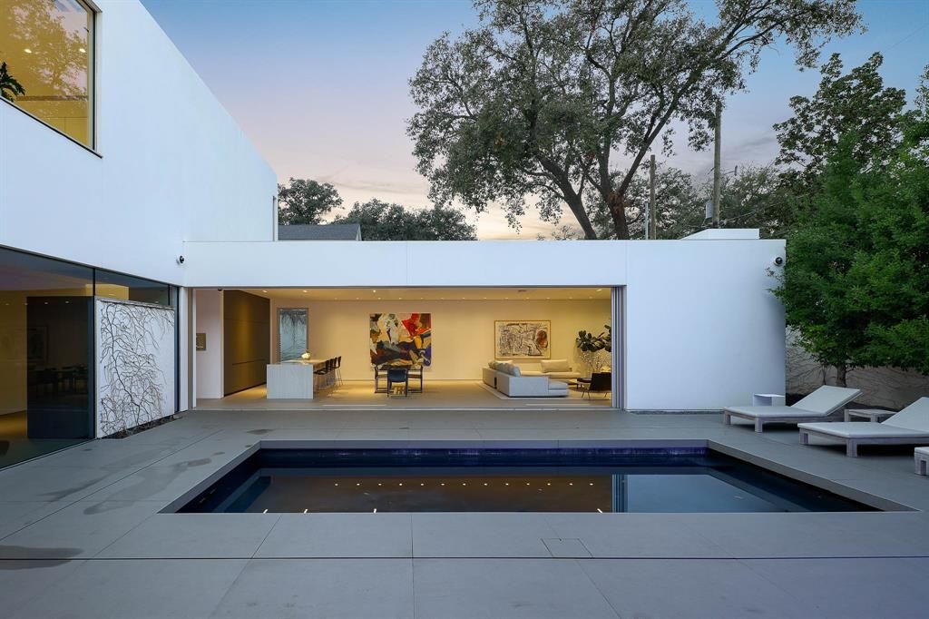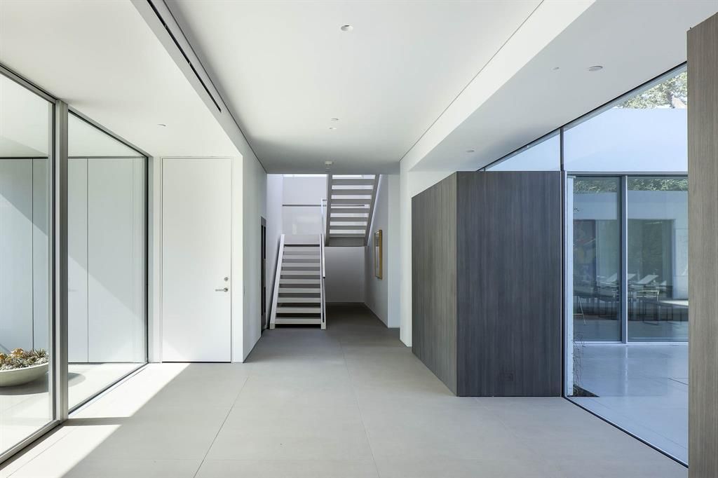 Step into a world of unparalleled sophistication with this stunning masterpiece, completed in 2023. Crafted by the acclaimed architect Lionel Morrison and the award-winning landscape artist David Hocker, this museum-modern design is appointed with exquisite Italian fixtures, setting a new standard for refined contemporary elegance. The sleek stucco exterior, enhanced by Porcelanosa Krion panels, elegantly conceals the garage, while the intimate U-shaped courtyard floor plan offers a sanctuary of privacy. Inside, the great room dazzles with an Ernestomeda kitchen, featuring Gaggenau appliances seamlessly integrated into chic Italian cabinetry, complemented by Macaubas Quartzite countertops. Experience seamless indoor-outdoor living with a fully retractable, motorized Keller window system framing the courtyard. The primary suite is a haven of tranquility, boasting a Molteni closet, a yoga studio, and a spa-like bathroom complete with a jacuzzi-cold plunge, steam room, dual showers, and luxurious fixtures from Boffi and Fantini, with a soaking tub and double vanity by Antonio Lupi. The lower level is a retreat of its own, featuring an intimate library with a bar, fireplace, and Molteni wall system, a spacious laundry room, and a secure 2-car garage with Amazon rooms for worry-free deliveries. Upstairs, discover two guest suites, a large playroom, an office-homework area, a bar, and a state-of-the-art fitness room with a Planar LED display, its own bar, and full bathroom. If a fourth bedroom is needed, a closet could easily be added to the fitness room to create a second primary or a third guest suite. The beautifully landscaped and illuminated courtyard spaces are adorned with custom imported Italian cobblestone and Ipe woodfencing, all controlled by Creston automation, Lutron controls, and Trufig fixtures. Nestled on one of Highland Park's most prestigious streets, this home is just a stroll away from the vibrant Highland Park Village.