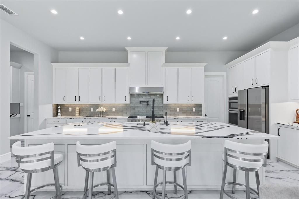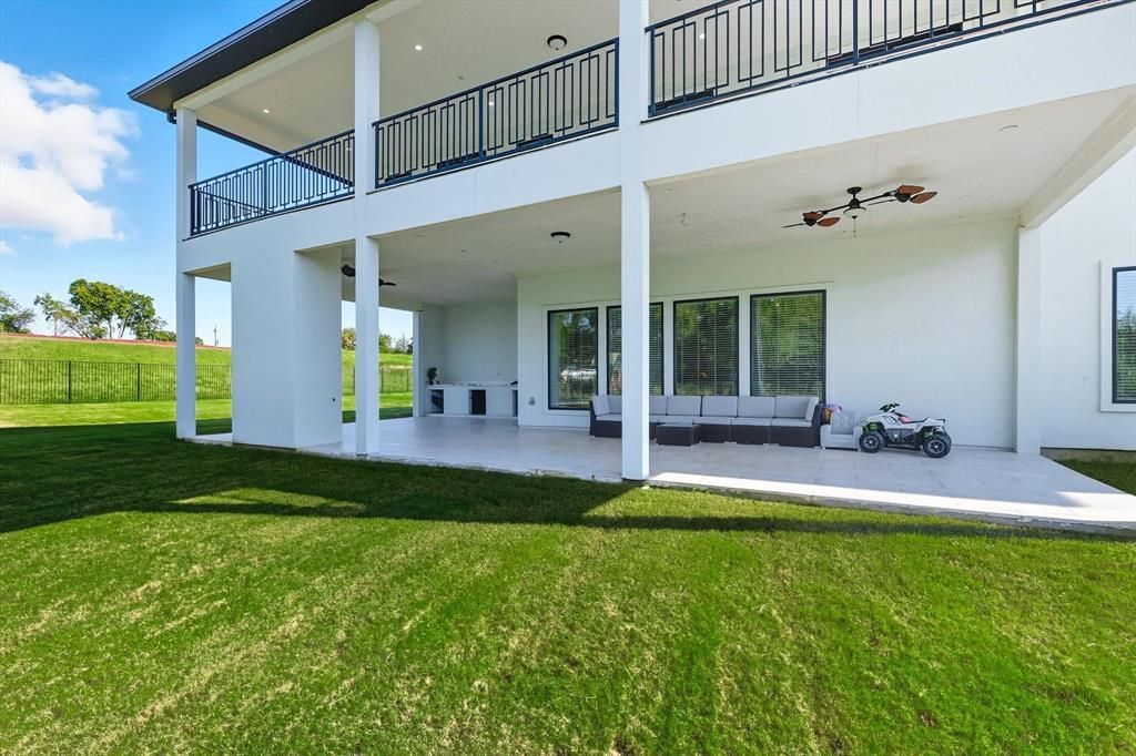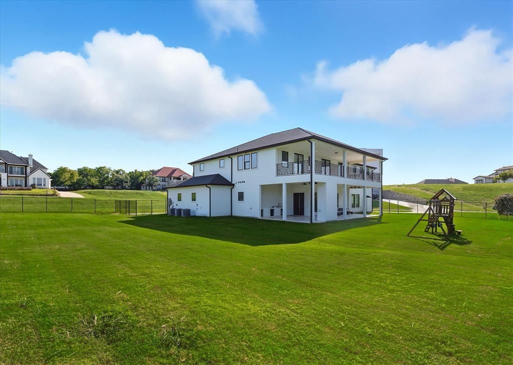 Welcome to this stunning 5,695 sq. ft. residence in The Colony's prestigious gated community, just minutes from lakeside recreation, trails, and scenic views. This spacious 5-bedroom home offers the ultimate blend of luxury and functionality, featuring two primary suites and two laundry rooms, ideal for multigenerational living or added convenience. The open floor plan showcases a chef's kitchen with quartz countertops, a commercial-grade range, pot filler, and oversized island, perfect for entertaining. Generously sized closets provide ample storage throughout. Step outside to enjoy the expansive backyard and covered outdoor patio, or head to the nearby lake for boating, fishing, and outdoor activities. With designer finishes, thoughtful upgrades, and plenty of room to grow, this property is a rare find in a highly sought-after location.