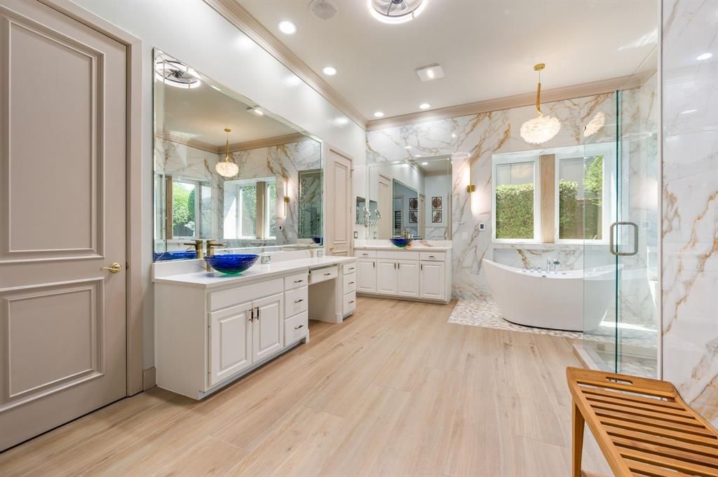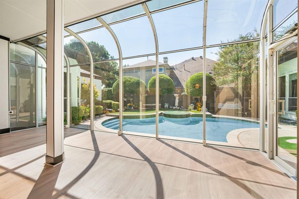 Magnificently renovated and full-featured home in Lakeside on Preston. This is an entertainer's dream or family's paradise- sunroom Bali-inspired oasis to relax or step out to the resort-style sparkling pool and heated spa, chef's kitchen with separate prep kitchen for catering or every day use, large master suite with freestanding jetted tub and expanded shower, multiple living areas with guest bedroom downstairs, separate office, and three car garage! Upstairs are two bedrooms connected with a Jack and Jill bathroom, and full living room ready for TV and games. Expansive pool views throughout the first floor. All appliances included with mini wine fridge and icemaker in kitchen island, full height wine fridge at entry, 42in Forno refrigerator, 48in Zline range, washer and dryer in utility room. Maintenance-free living with pool, yard, and AC filter service included. Offering the rare combination of luxury, comfort, and resort-style living, all in one stunning space. Community offers three private lakes, miles of scenic walking trails, community pool, clubhouse, tennis courts, and is known for a strong sense of community in a central location. Perfect home to enjoy while you build your dream home or transition to the area!