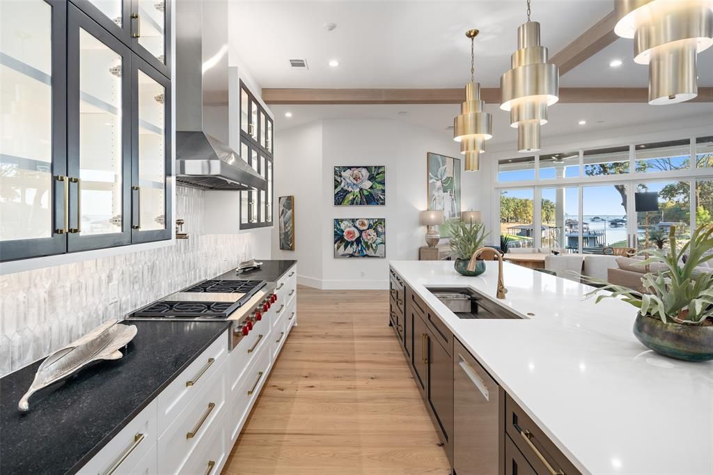 Luxurious new construction in the gated Pinnacle Golf Club on Cedar Creek Lake! This .83-acre property offers 6,998 sq. ft. of luxury living with unobstructed lake views and premium finishes throughout. A dramatic staircase, soaring ceilings, and walls of windows fill the home with natural light and showcase the water beyond. The floor plan includes 7 ensuite bedrooms"”5 with lake views, and one of which serves as a private suite with its own staircase. The main-level primary suite features dual sinks, a spa bath with separate tub and shower, and a walk-in closet complete with a coffee bar, washer and dryer. The chef's kitchen is equipped with Wolf and Sub-Zero appliances, double ovens, wine refrigerator, warming drawer, bar seating, and a full prep kitchen and butler's pantry - perfect for catering. Designed for entertaining, the home includes two spacious living areas with fireplaces, an upstairs wet bar with ice maker and microwave, and multiple outdoor spaces including a covered patio with fireplace and grill and an upstairs balcony for sunsets. The main utility room features a dog shower, tons of storage and room for an extra fridge. Highlights include five fireplaces, a second utility rooms, heated bathroom floors, smart lighting, whole-home sound wiring, security system with cameras, wired EV charging, backup generator, and four-car garage with golf cart parking. Community amenities include golf, pickleball, tennis, swimming, and a clubhouse with restaurant and bar. A rare opportunity to own new construction in one of Cedar Creek Lake's most desirable neighborhoods.