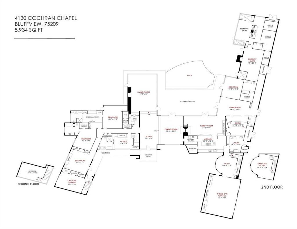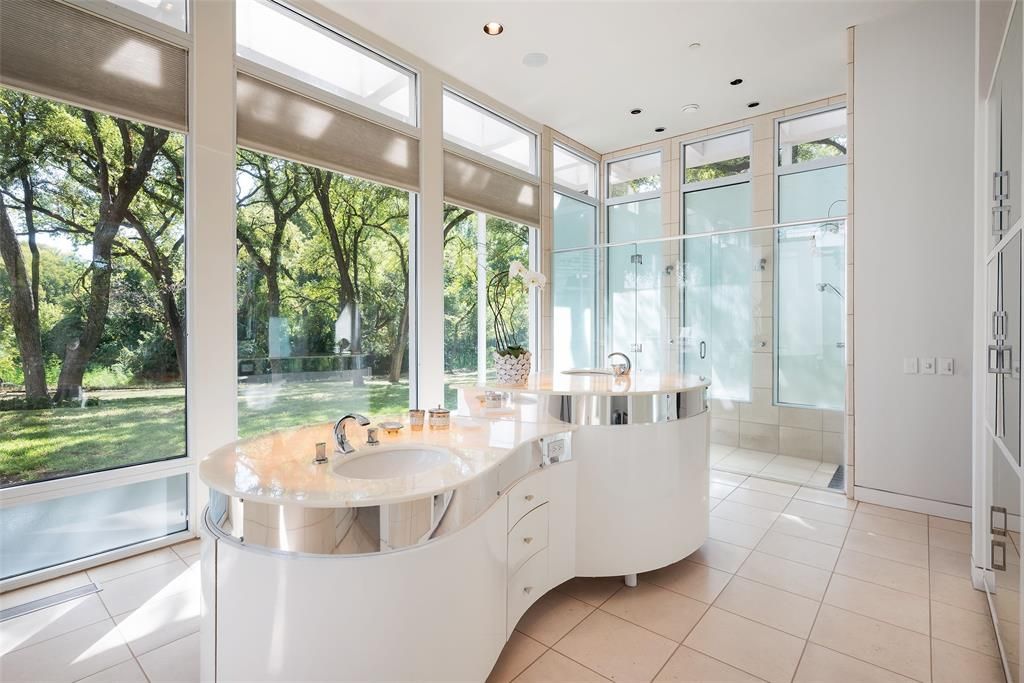 A stunning setting on rare 3.38 acres in the coveted Bluffview area of Dallas, featuring hard to find ONE STORY footprint, giving enormous scale and lifestyle to every room.This approx 9,000 sqft iconic estate has been the host for several movies and TV series, national commercials and publications, the gathering spot for many large community events, in addition to their everyday fun family living. Spectacular in everyway, the front gives off the quiet, private approach that was key to the location selection, while the interior and backyard's striking modern design w 6,000 sq ft of glass, 71,000 lbs of steel giving the most gorgeous unobstructed views of the spectacular nature and indoor-outdoor lifestyle surrounded by the creek setting. Renowned achitect Guy Courtney skillfully designed patterns of Richard Meirer's work and the Getty Museum in LA in this estate, allowing the perfect backdrop for the seller's extensive art collection, large scale entertaining needs and a resort relaxation atmosphere that takes in all the beauty year round. Wanting to be connected to the natural surroundings at every turn, the primary bath is a perfect example of pampering in the tree house like experience while enjoying all today's comfort amenities. The sellers took in their service staff input to design the gourmet kitchen w 3 ovens, 3 sinks and a silver cloth lined pantry for optimal entertaining needs. Lighting consultants evaluated every inch to ensure the perfect scene and zone control, accoustically pure media room, over engineered throughout, 3 ventilation systems protecting crawlspace, living area and roof, extra large limestone flooring blend inside and out seamlessly, and steel to hold the large 20 ft glass panes without mullins or columns in the corners...all to masterfully bring enjoyment to the eye. A quiet, hidden street with the best neighbors and location found in the sought after Bluffview area.