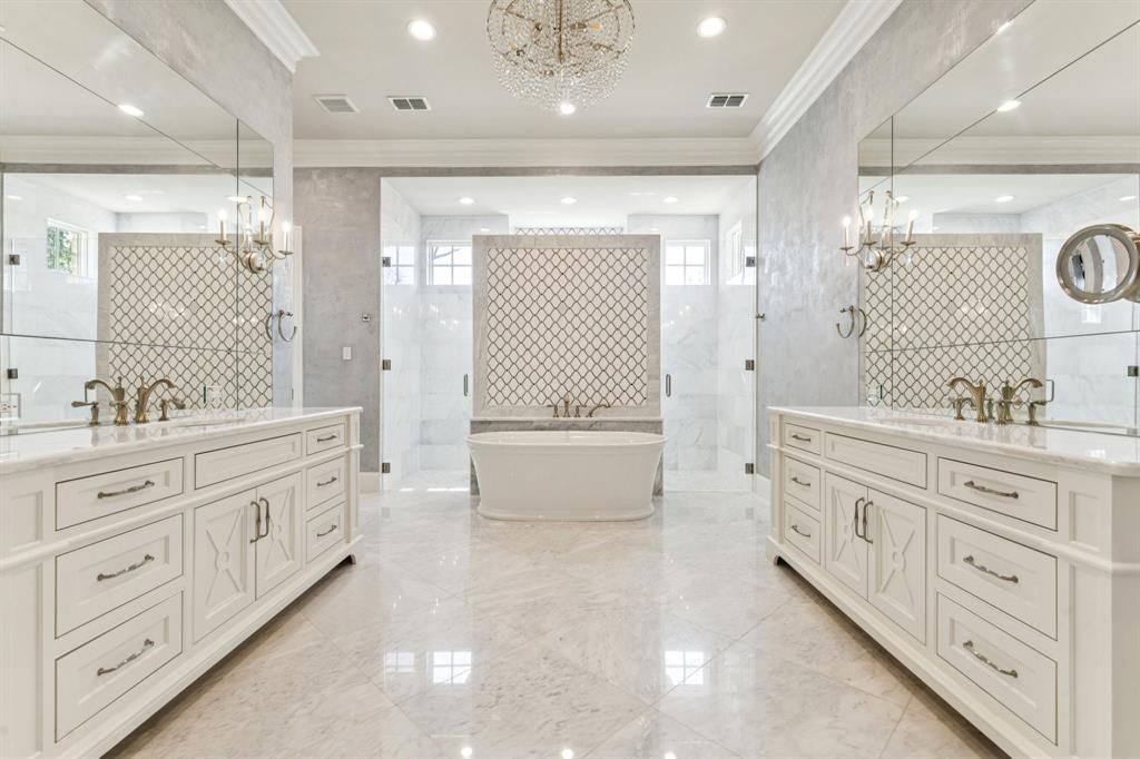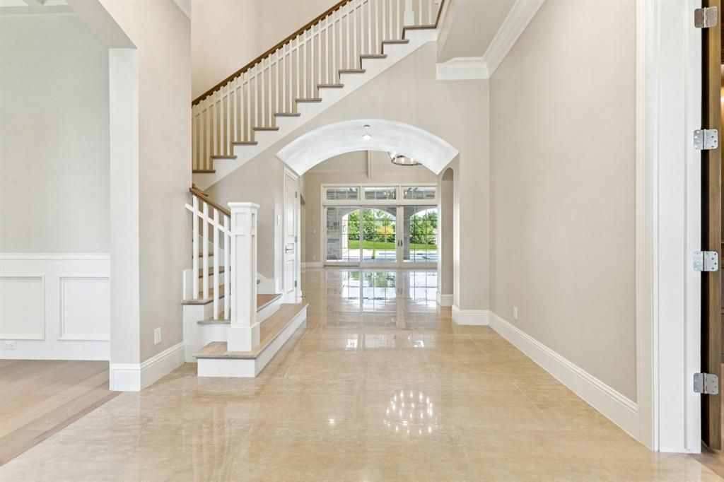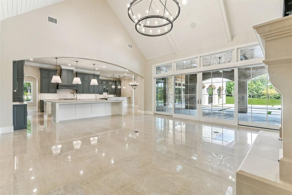 Majestic Private Estate Home located in the ESTATES OF QUAIL HOLLOW! This meticulously designed 7,320 sq ft, 4-bedroom, 4.5-bathroom home is nestled on a private 1.5+ acre cul-de-sac homesite. This estate showcases serene pond views from your front door and a park-like setting in your backyard! Grande French doors invite you into an impressive foyer with gleaming floors, custom millwork, and a custom hand-forged iron chandelier. The gourmet kitchen showcases Taj Mahal honed quartzite double islands, Wolf 6-burner range with griddle and double ovens, SubZero refrigerator, Cove dishwasher, and adjacent bar with wine refrigerator and Scotsman ice maker. The great room features a dramatic floor to ceiling paneled wall with a 10-ft cast stone fireplace and chevron inlay, vaulted wood ceiling, and an abundant wall of glass windows and French sliding doors which offer spectacular views of this magnificent property. Retreat to the luxurious primary suite with diamond cut marble floors, Hollywood soaking tub, walk-in marble shower, two vanities, makeup bar, and two custom walk-in closets. Additional highlights include multiple game rooms with wood beam ceilings, premiere study with coffered ceiling and wood panel walls, home gym, extended covered patio with outdoor kitchen and gas grill, custom stone fireplace, sparkling pool and spa, sauna and more! Every exquisite detail reflects exceptional craftsmanship and designer finishes in this highly coveted 24-hour guard gated community!