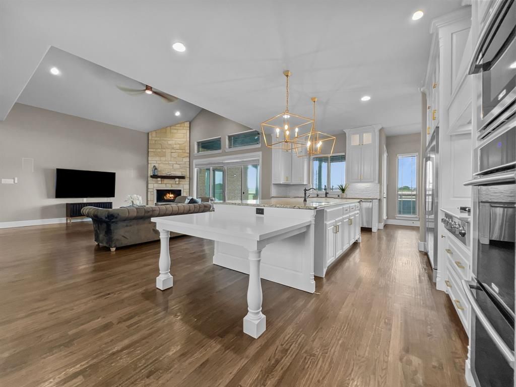 A True Country Escape in North Preston Lakes Estates - Set on 3.56 scenic acres in the heart of Celina, this refined one-story custom home blends luxury, comfort, and equestrian excellence. Thoughtfully updated with timeless touches throughout, it welcomes you with rich hardwood flooring, a soaring stone fireplace, and expansive sliding glass doors that invite the outdoors in. The gourmet kitchen is a chef's dream, boasting a 68in built-in fridge, 6-burner gas cooktop with pot filler, custom vent hood, double ovens, and an oversized island with a farmhouse sink and dedicated planning space. The open-concept design flows effortlessly into a spacious living area and game room, ideal for entertaining or relaxing in style. Retreat to the luxurious primary suite featuring a private sitting area, fireplace, spa-inspired bath, walk-in shower, and dual walk-in closets. Secondary bedrooms are privately situated and each include ensuite baths for ultimate comfort. Step outside to your backyard sanctuary to an oversized covered patio, sparkling pool, and panoramic views of your private acreage. For horse lovers, the 36x30 metal barn is fully equipped with water, electric, two Ramm stalls, and ThuroBed mattress flooring. Five pipe-and-cable fenced paddocks offer secure turnout and grazing space. Additional highlights include a 3-car garage with epoxy flooring with stair-access Texas basement, radiant barrier decking, and energy-efficient foam insulation. Welcome home your horses and beloved animals to this rare luxury retreat!