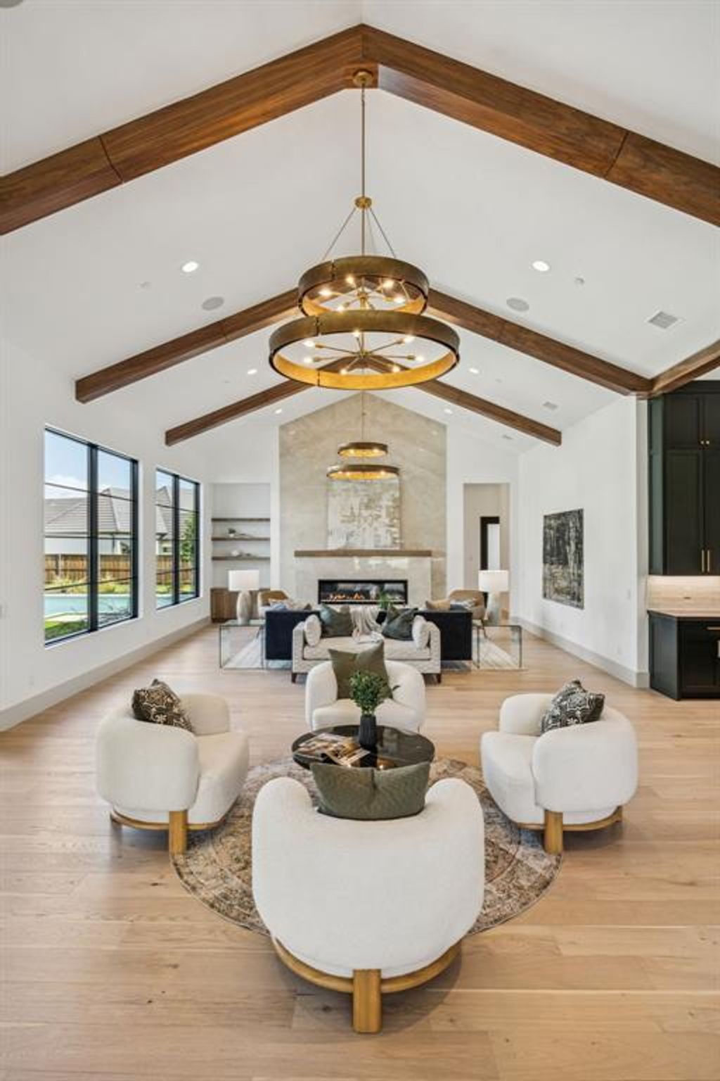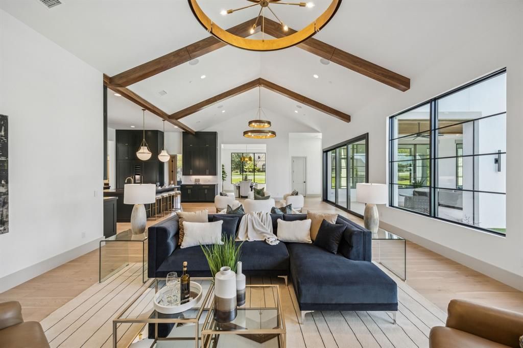 Welcome to this exceptional 1 acre, 8.082-square-foot transitional-style masterpiece, crafted by Calais Custom Homes. The Newly constructed residence effortlessly blends classic elegance with modern sophistication. Designed for luxurious living and entertaining, the home features 5 spacious bedrooms, each with en-suite baths, and multiple expansive living areas filled with natural light. High-end finishes, clean architectural lines, and thoughtfully curated materials define the transitional aesthetic, creating a timeless yet contemporary feel throughout. Gourmet chef's kitchen with top-of-the-line appliances, prep kitchen, and walk in pantry. Serene primary suite with spa-like bath, and spacious his-hers walk in closets. First floor offers a media room, game room, workout room and so much more. Three laundry rooms. Every detail has been meticulously considered, delivering the perfect balance of function and style. The 5 car garage gives you plenty of room for parking.
