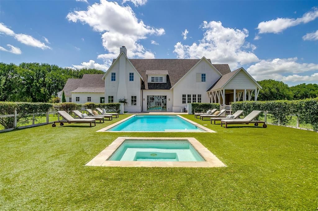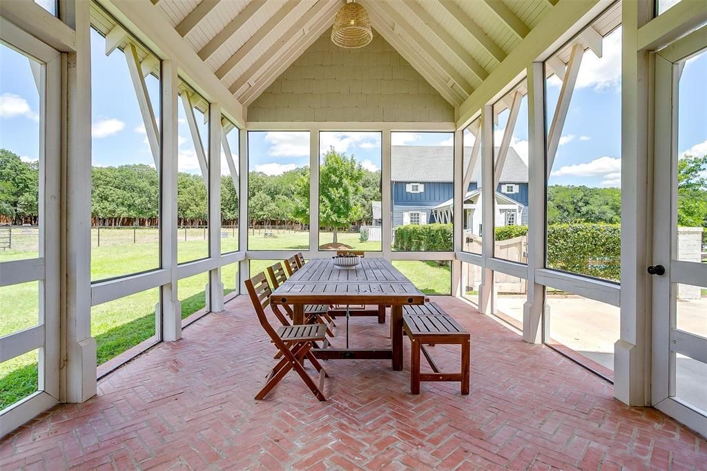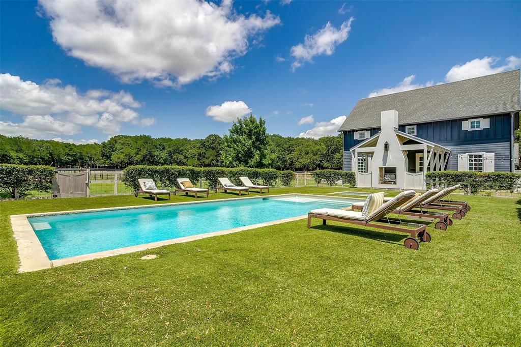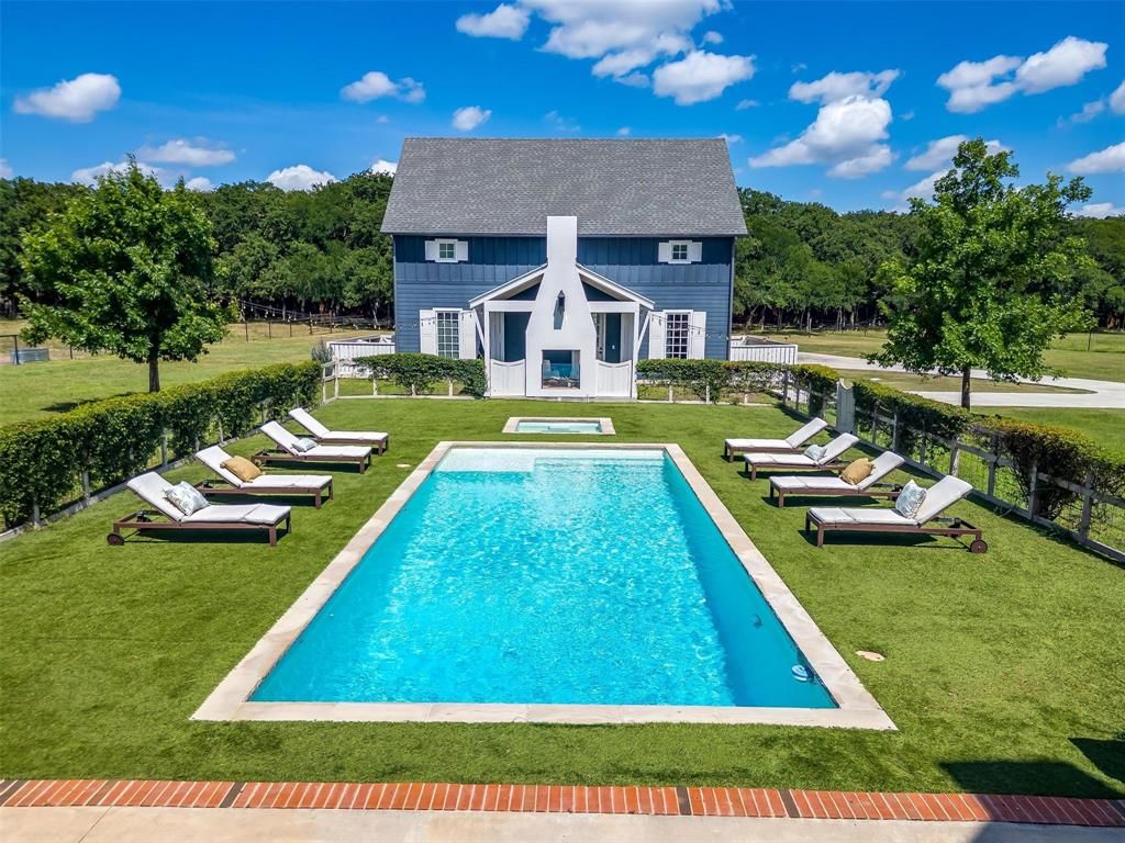 Hamptons-inspired elegance meets relaxed Texas living on this breathtaking 10± acre ag-exempt estate located just 18 miles from downtown Fort Worth in Aledo ISD. Behind 2 private gates, the property unfolds into a serene, tree-lined retreat with 2 beautifully designed residences, resort-style outdoor living, and thoughtful amenities at every turn. The 5,130± SF main home features 5 spacious bedrooms, 4.5 baths, and multiple living and entertaining spaces. A wall of glass upon entry offers a stunning view of the acreage beyond, while the chef's kitchen delights with handcrafted Quartzite apron-front sinks, Aga appliances, and an oversized island with bar seating and an ice maker. Seamless transitions between indoor and outdoor spaces create the perfect backdrop for entertaining, whether gathered around the fireplace on the vaulted covered porch, relaxing on the screened-in porch, or soaking in the modern pool and spa surrounded by an AstroTurf yard and lounge seating. The 2,400± SF guest house offers incredible flexibility with a full kitchen downstairs, kitchenette upstairs, and 4 bedrooms"”ideal as a pool house, private apartment, or guest quarters. A detached 285± SF studio offers the perfect space for an office, gym, or creative retreat. With four laundry rooms, two separate 2-car garages, wells and water filtration systems, and a buried propane tank, every detail has been designed with comfort and convenience in mind. The property is cross-fenced and plumbed for livestock, with mature trees offering a peaceful, natural buffer at the back of the acreage. Gas lanterns flicker at sunset, front porch swings invite you to linger a little longer, and the sight of horses grazing in the distance brings a touch of timeless Texas charm. A rare opportunity to own a legacy estate where classic design and modern comforts exist in perfect harmony.