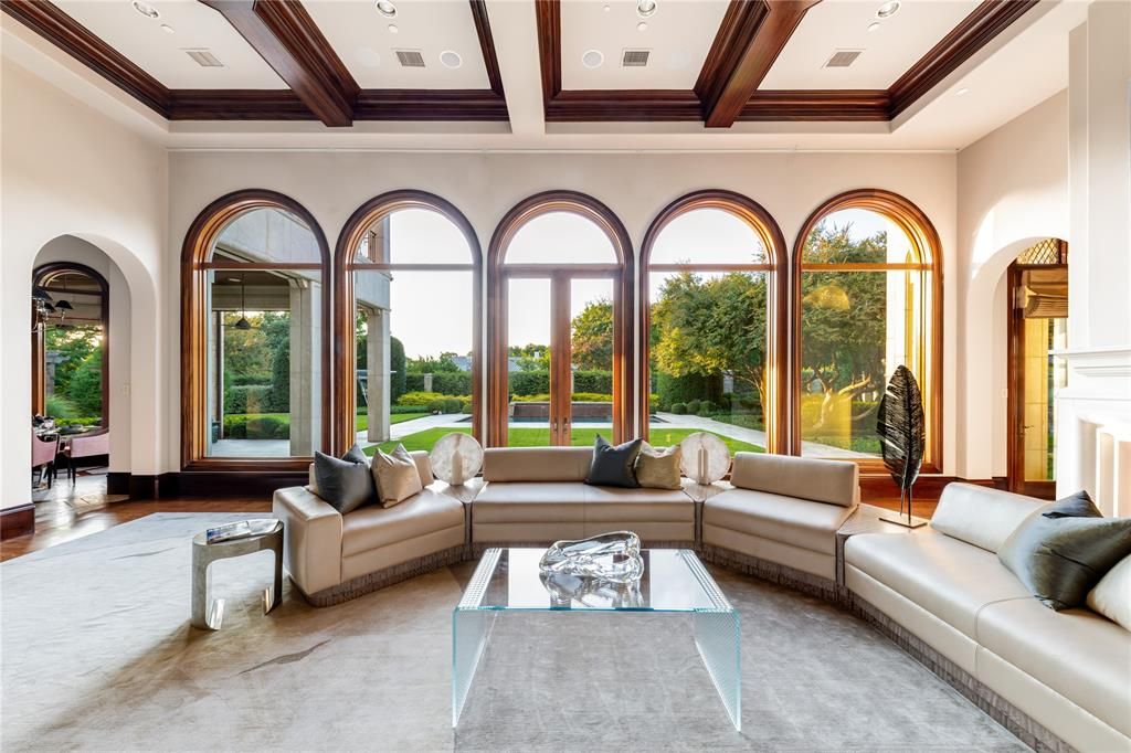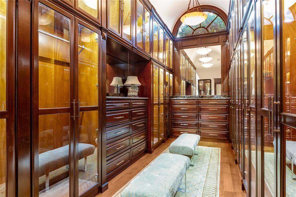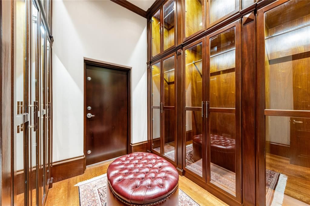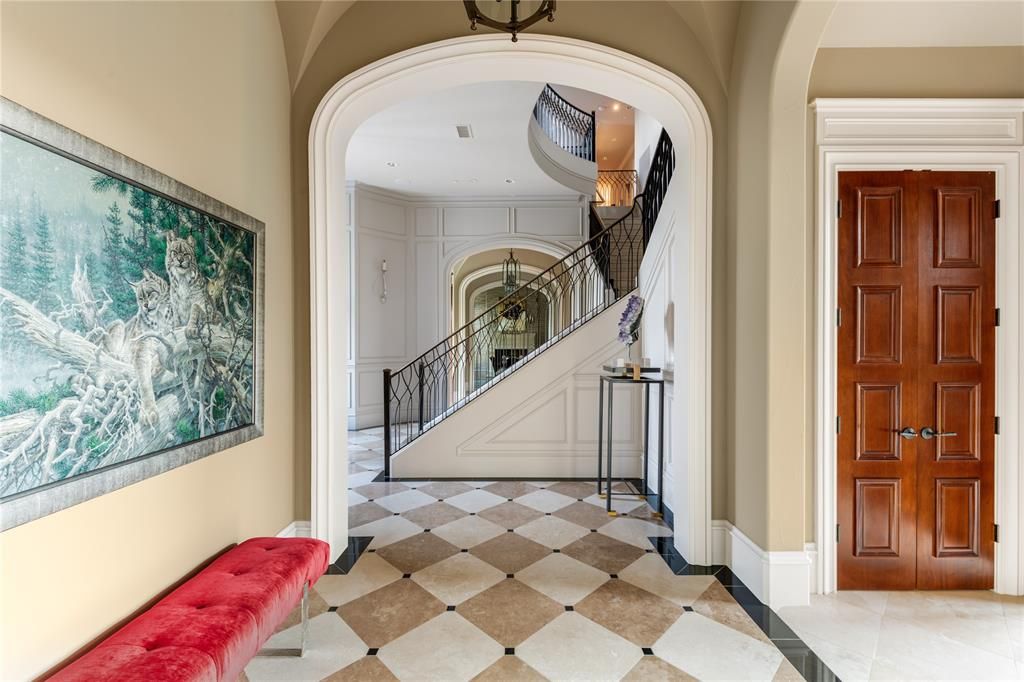 This extraordinary four bedroom, six bath estate, encompassing approximately 8,049 square feet and spanning two lots, is a masterpiece of design and craftsmanship. Built by Sharif Munir and designed by acclaimed architect Vernon Berry, the home showcases refined interiors by Tracy Rasor of Dallas Design Group, blending timeless elegance with exceptional detail. Every bedroom features its own en suite bath, while the primary suite offers two spacious walk-in closets, a dual shower, safe room, and custom UV maple cabinetry. Throughout the home, you'll find custom African Mahogany cabinetry by Cameron Knight, 5" wide plank hardwood flooring, hand-applied plaster finishes, and cast stone fireplaces that elevate each space. The gourmet kitchen is equipped with dual side-by-side Miele refrigerators, Wolf range, Miele steam oven, two Miele dishwashers, and a butler's pantry, creating a perfect environment for both entertaining and everyday luxury. Architectural highlights include a mahogany-paneled elevator, a domed ceiling with a plaster light ring, and a richly appointed library featuring a spiral staircase. Outdoor living is equally impressive, featuring a Lynx outdoor cooking system, patio fireplace, sparkling pool, lush professional landscaping, and a four-car garage with abundant storage. Additional amenities include seven HVAC units, a DaVinci Slate roof, conservatory, integrated smart home systems, and multiple safe rooms. Combining architectural distinction, cutting-edge technology, and luxurious comfort, this residence exemplifies unmatched quality, security, and timeless sophistication. Too many features and amenities to list! Please see the Transaction Desk for a detailed list.